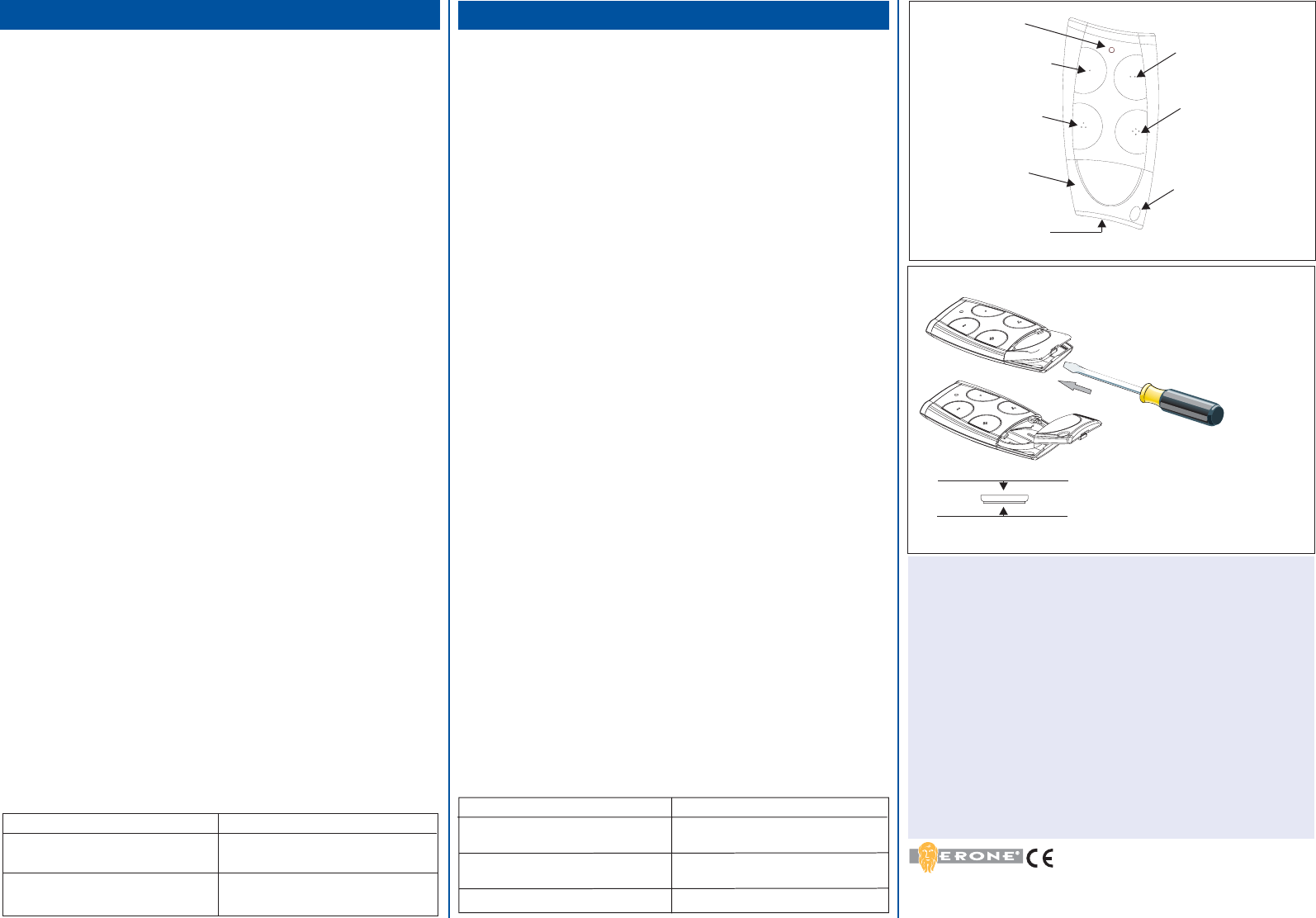 CDVI WIRELESS S P A FL433 TRANSMITTER ERONE MOD. T054A User Manual IS T5AERML
