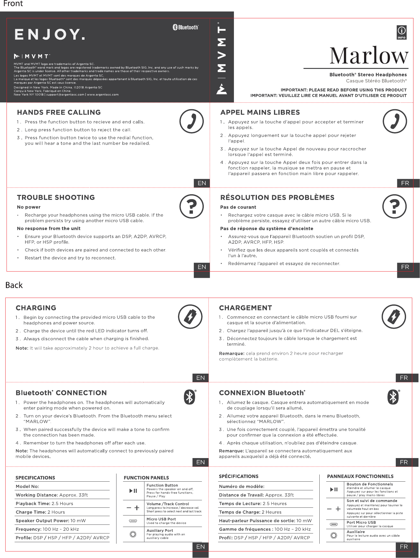 CHANCO ELECTRONICS FACTORY CK077 Bluetooth Headset User Manual HP6523 Manual EN FR OL 1227