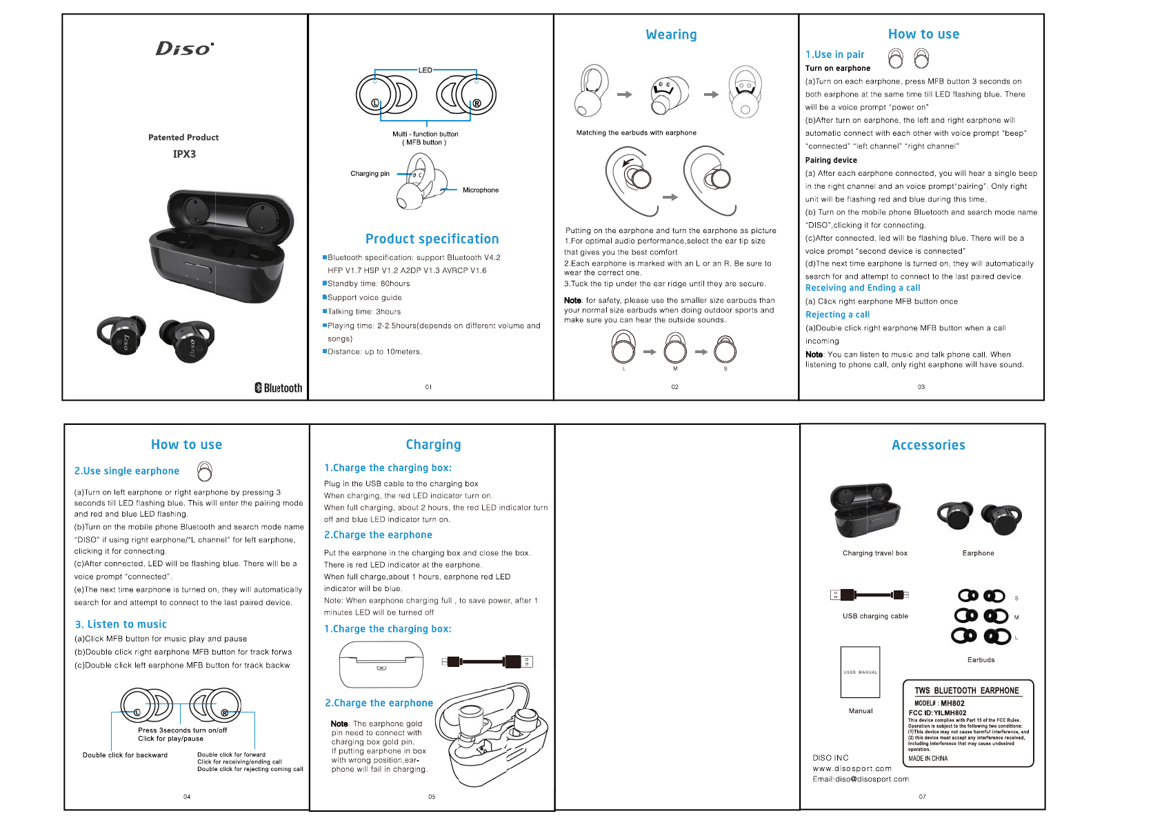 CHENGYAN SCIENCE and TECHNOLOGY MH802 TWS BLUETOOTH EARPHONE User Manual