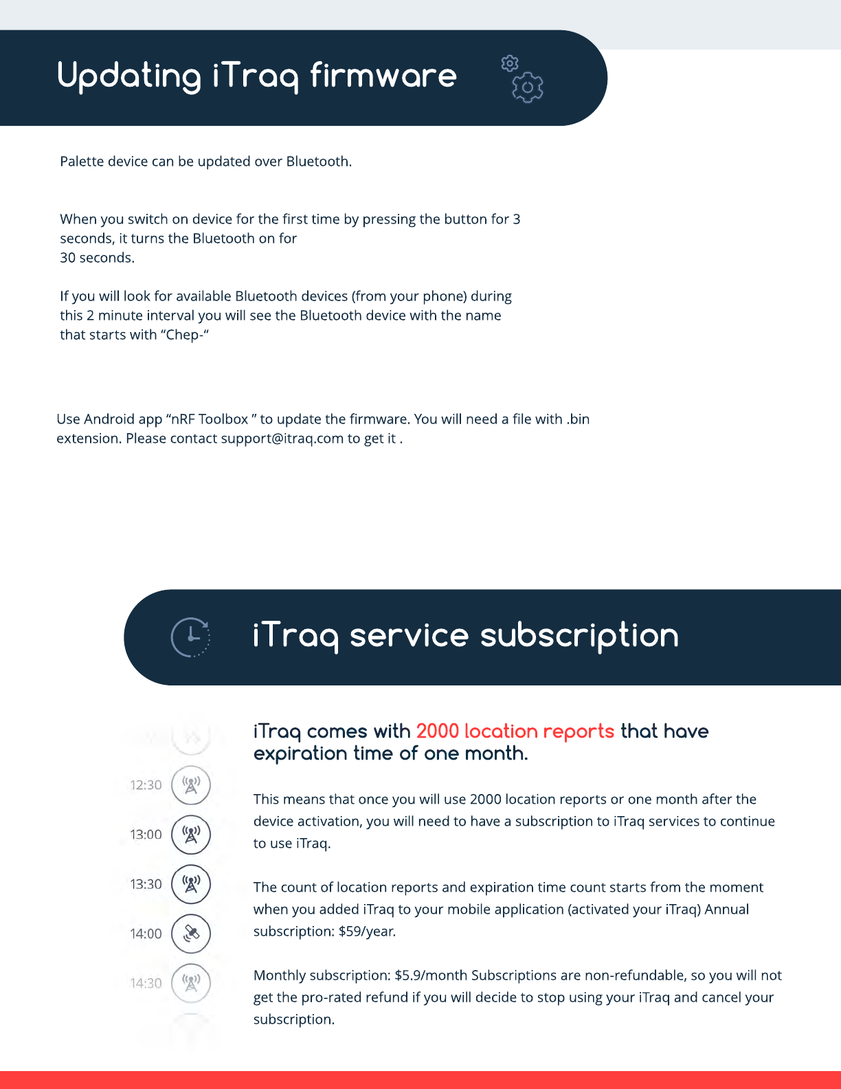 device activation, you will need to have a subscription to iTraq services to continue
