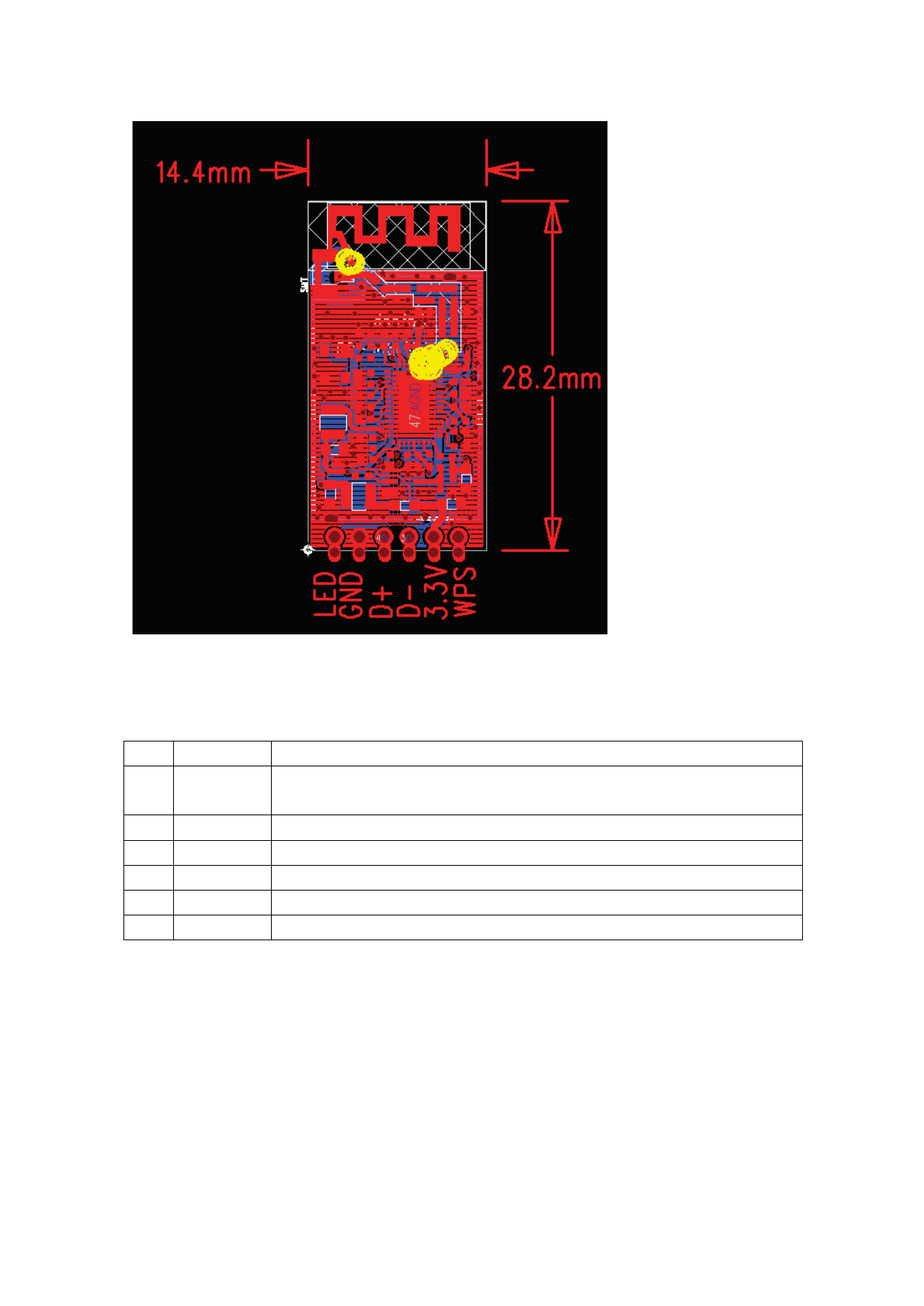WIFI module Size and PIN Description