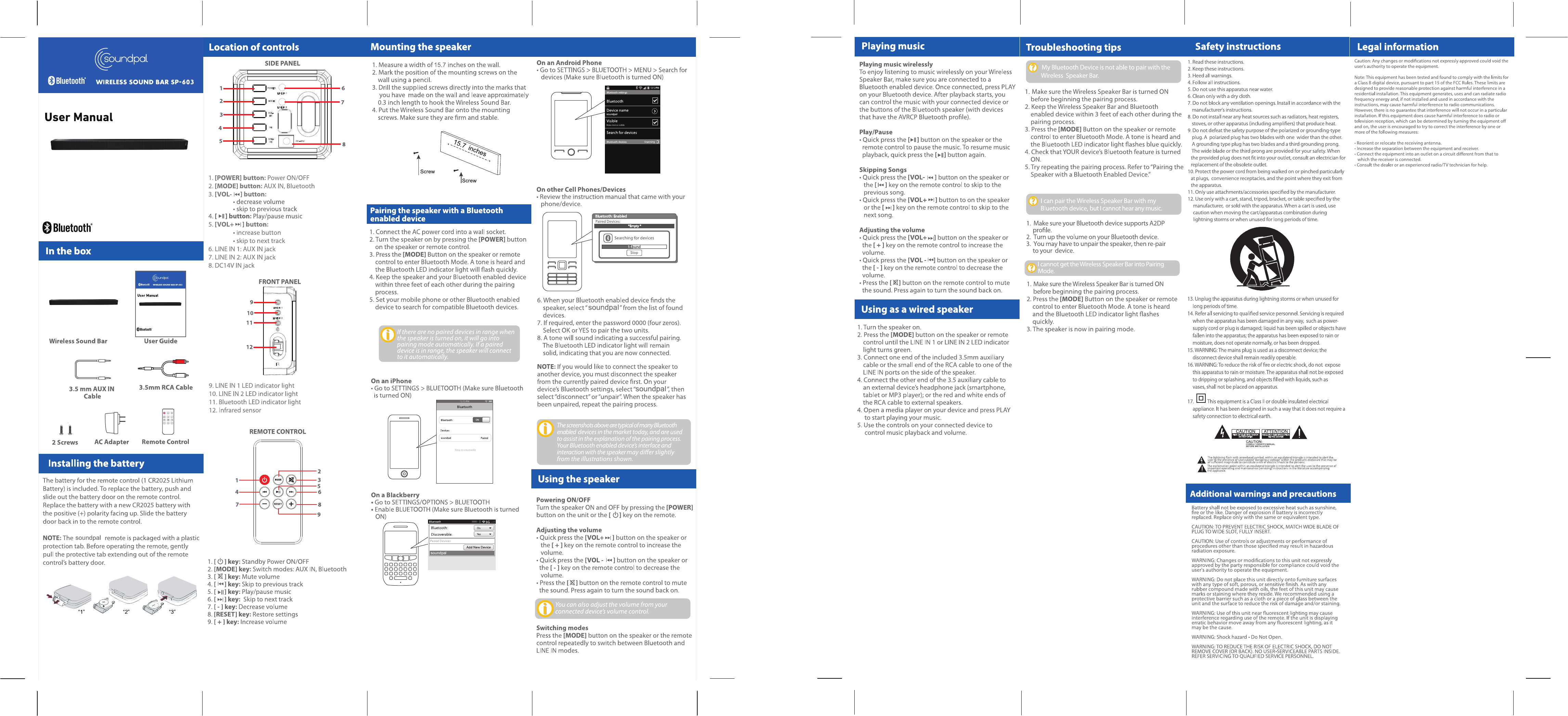 CHINA ELECTRONICS BS-603 Soundbar User Manual
