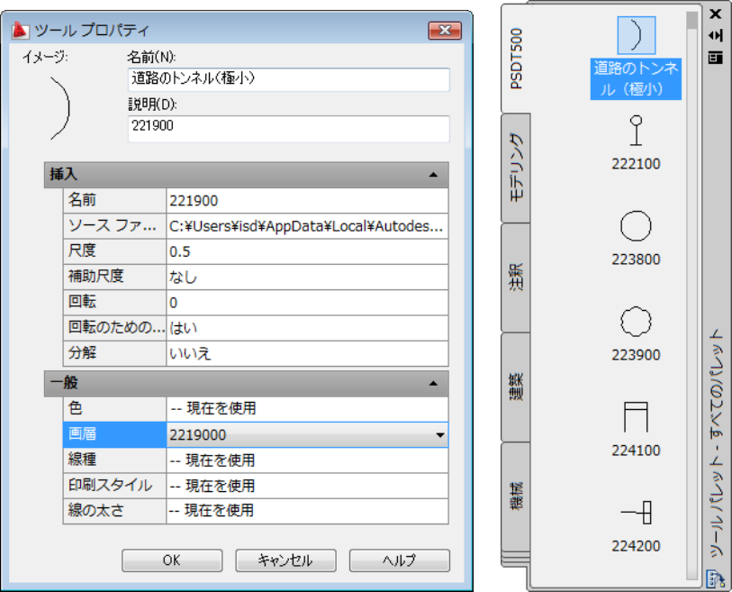 各縮尺の地図記号の様式で定められたブロック(地図シンボル)が定義されています。