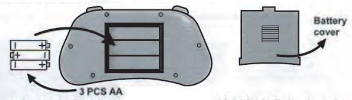 Slide out the battery cover of the remote controller. Install 3 x “AA” batteries (not included) in the