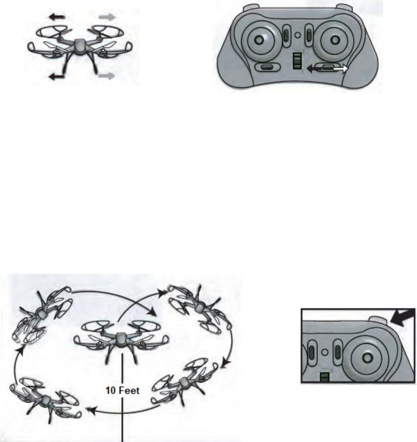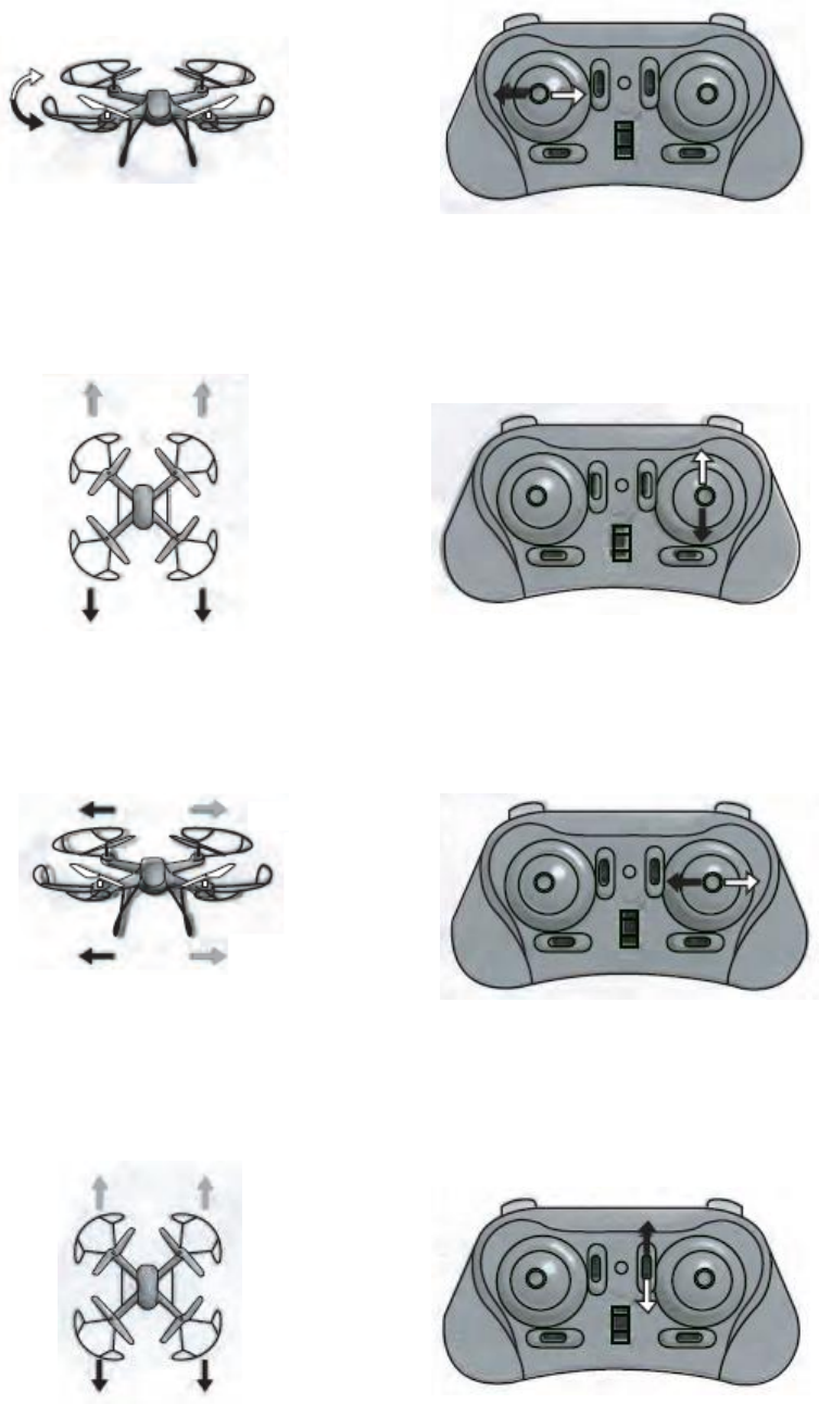 When the left throttle stick is pushed to the left/right, the Quadcopter turns left/right.