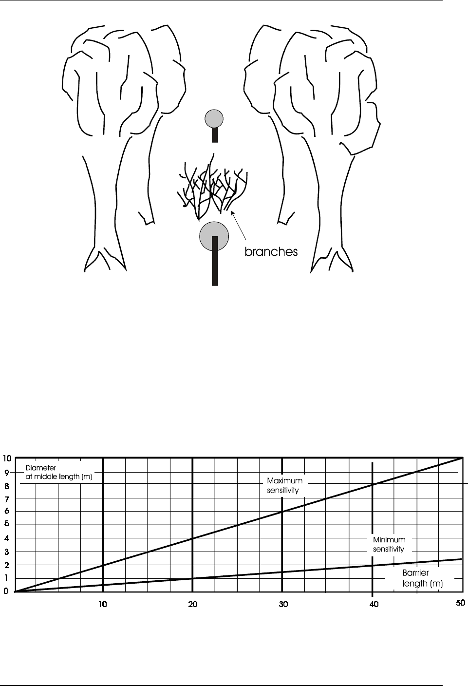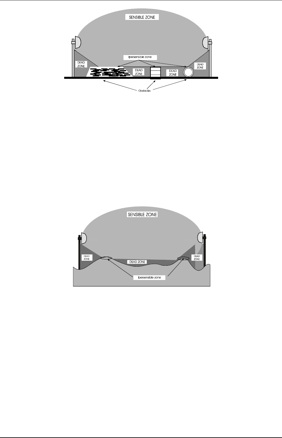 d) Presence of fixed parts within the sensitive field (land, walls, fencing, posts, etc.)
