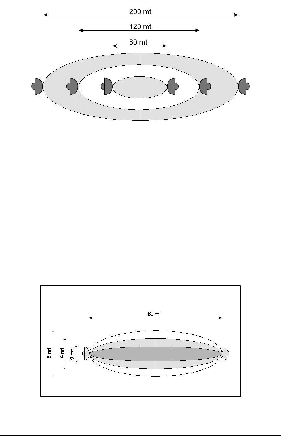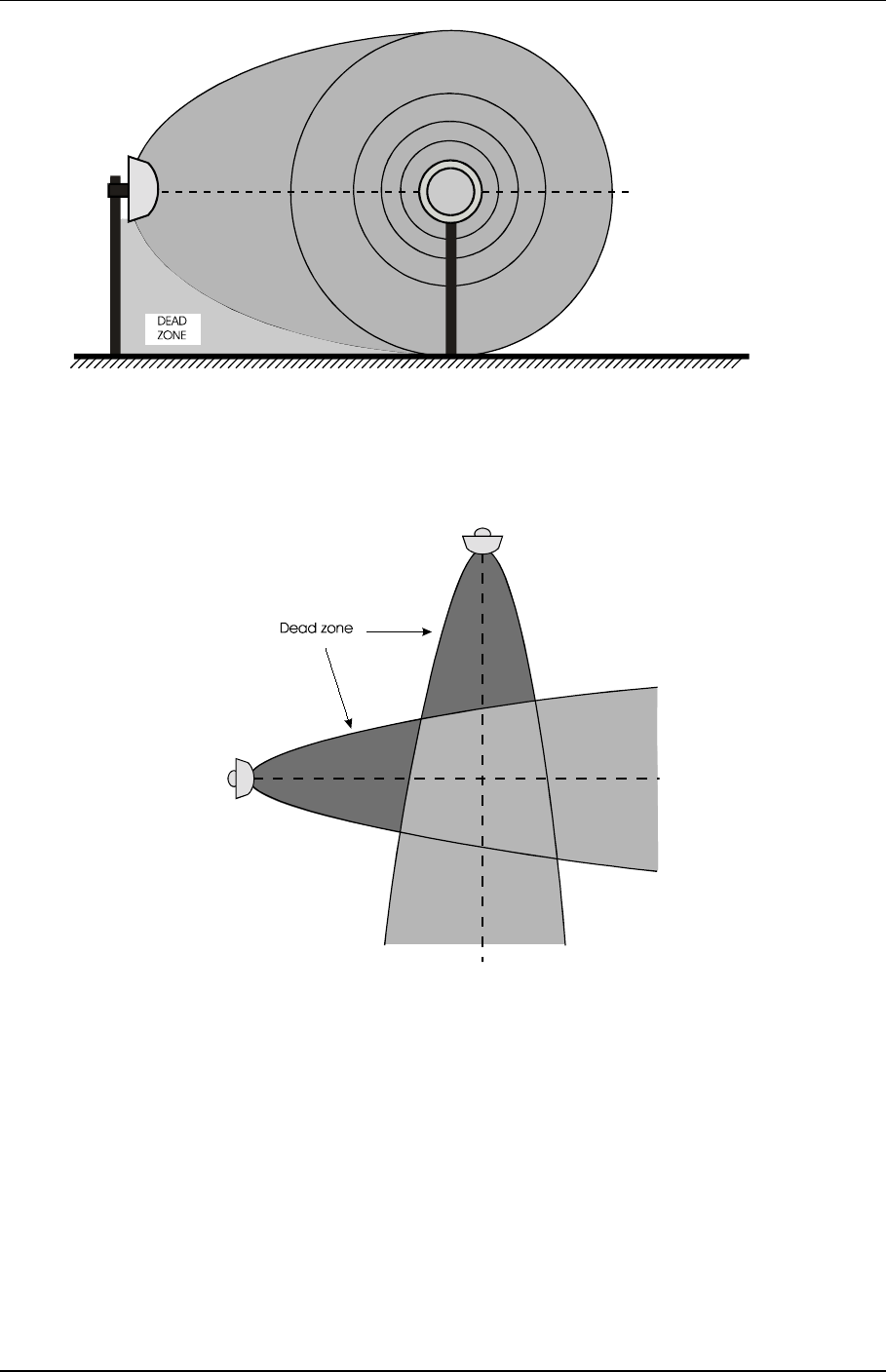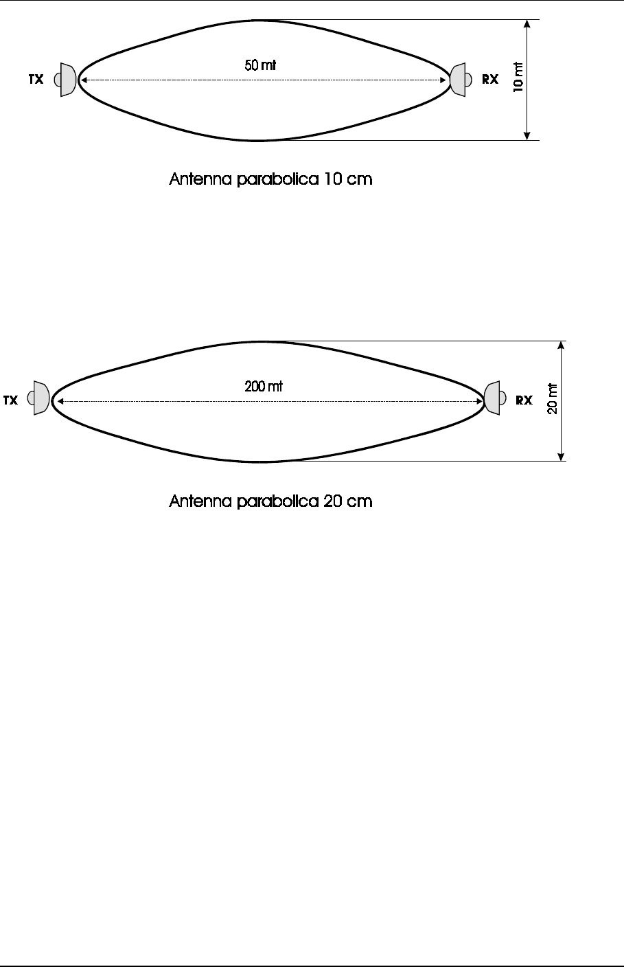 The 20cm PARABOLIC antenna forms longer fields of protection, but less wide ranging. (FIG. 1. a-b)