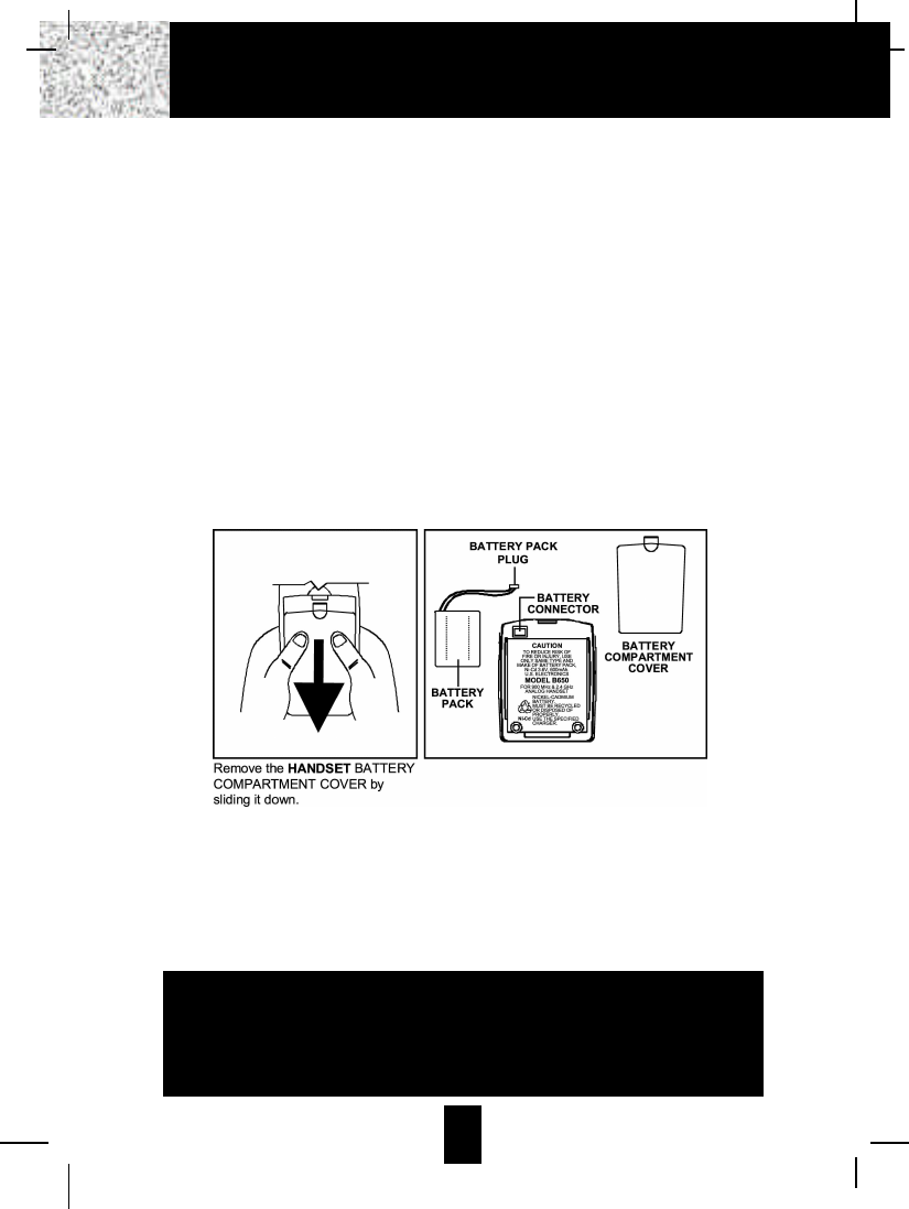 1. Remove the HANDSET BATTERY COMPARTMENTCOVER by sliding it down.