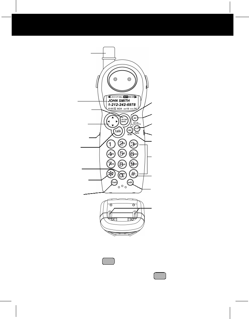 11. DIR (DIRECTORY) Button: Press to access names and numbers stored in the