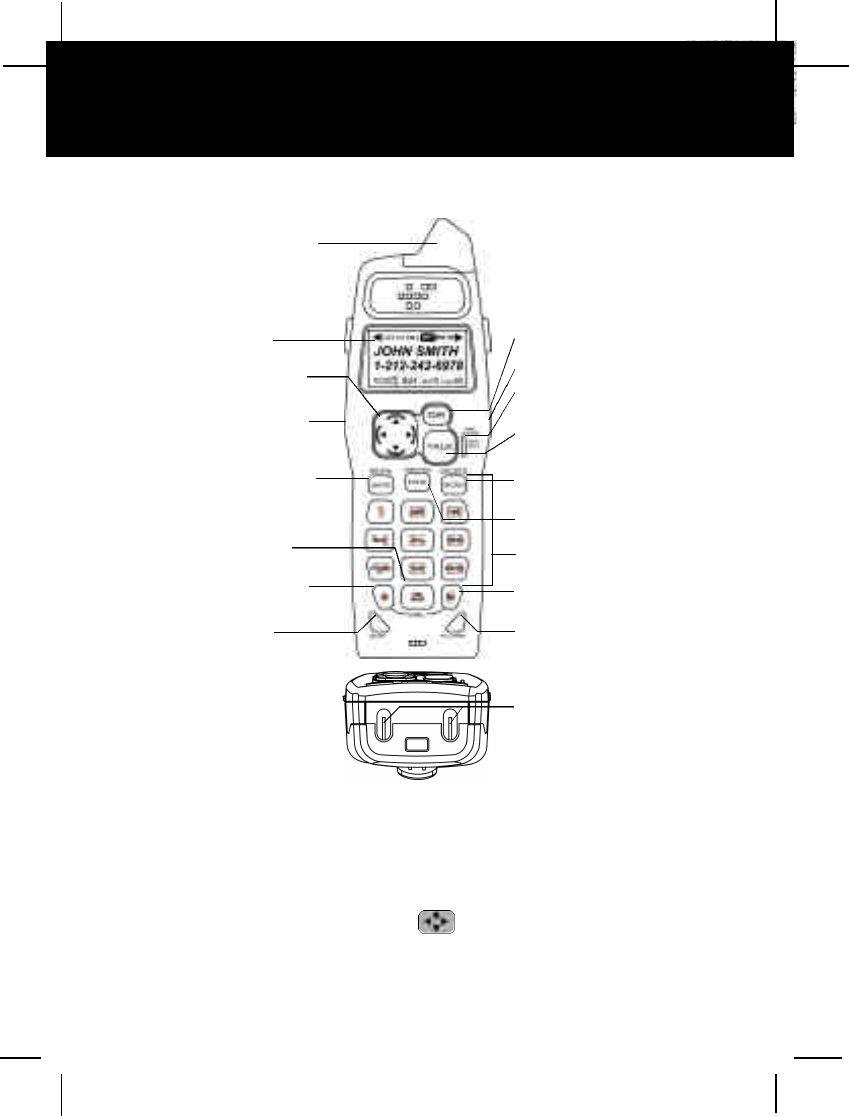 9. DIR (DIRECTORY) Button: Press to access names and numbers stored in the