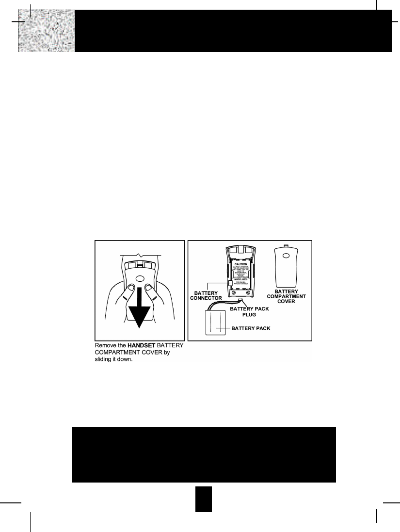 1. Remove the HANDSET BATTERY COMPARTMENT COVER by sliding it down.