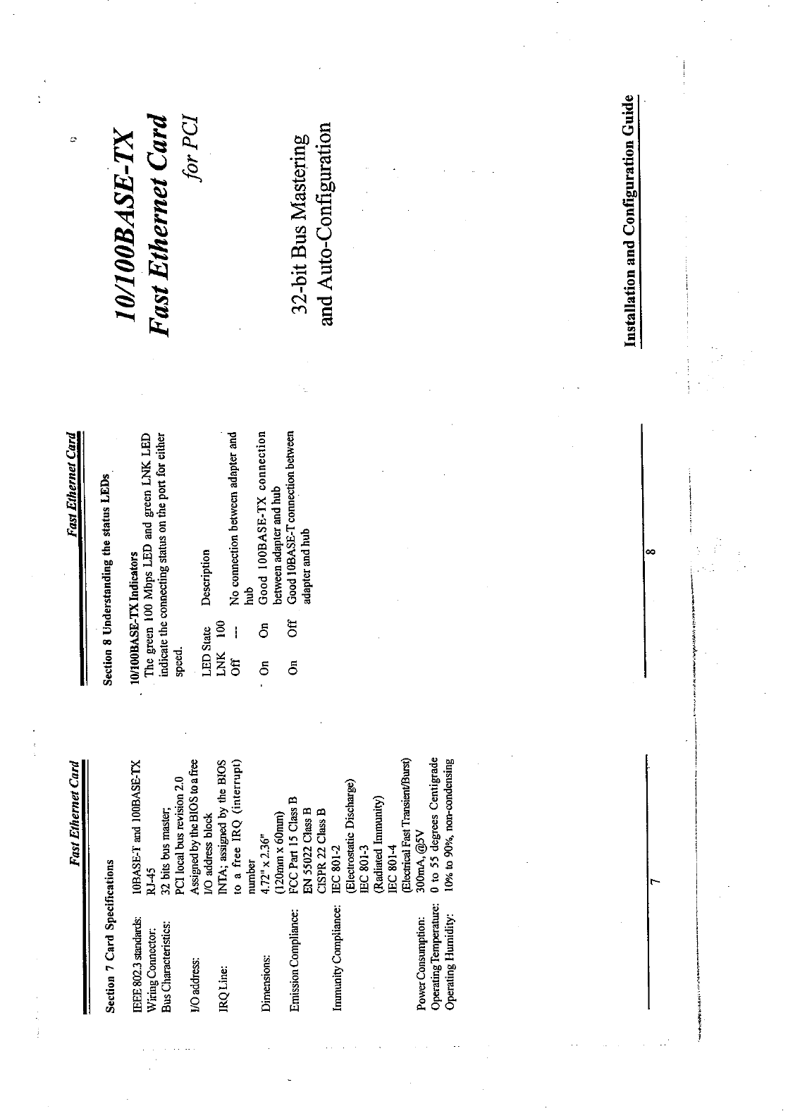 CIS Technology M430B 10/100 BASE-TX Fast Etherent Card for PCI User Manual C09750 C