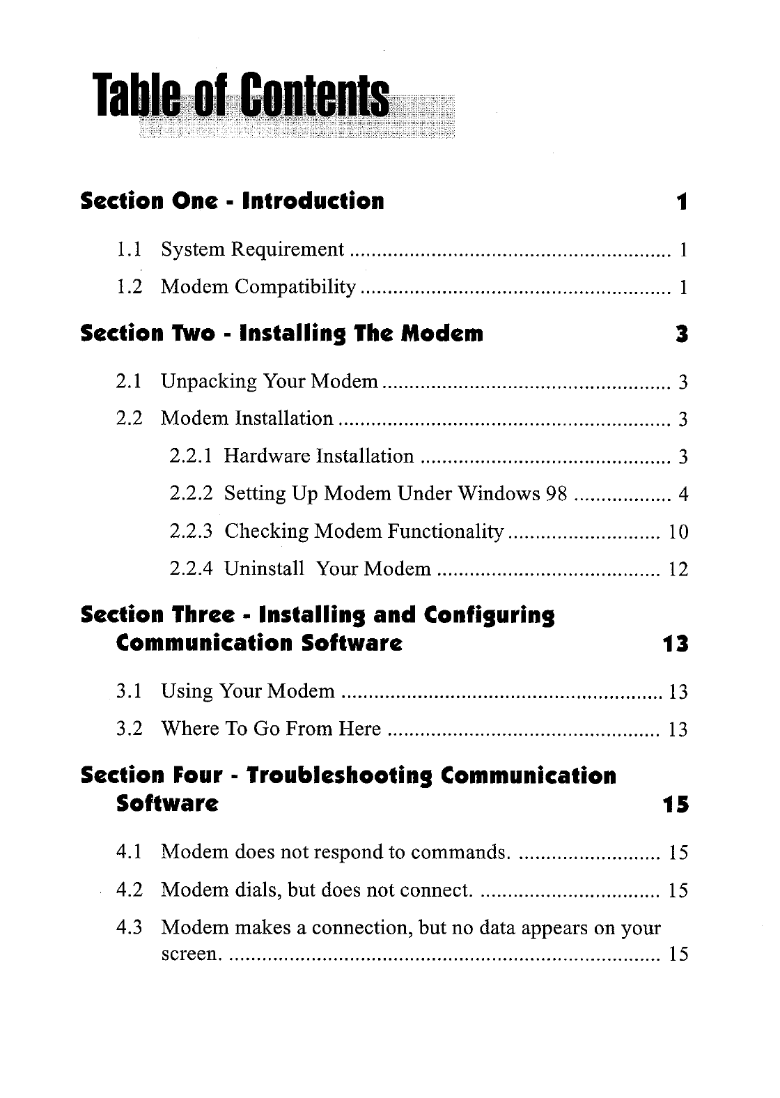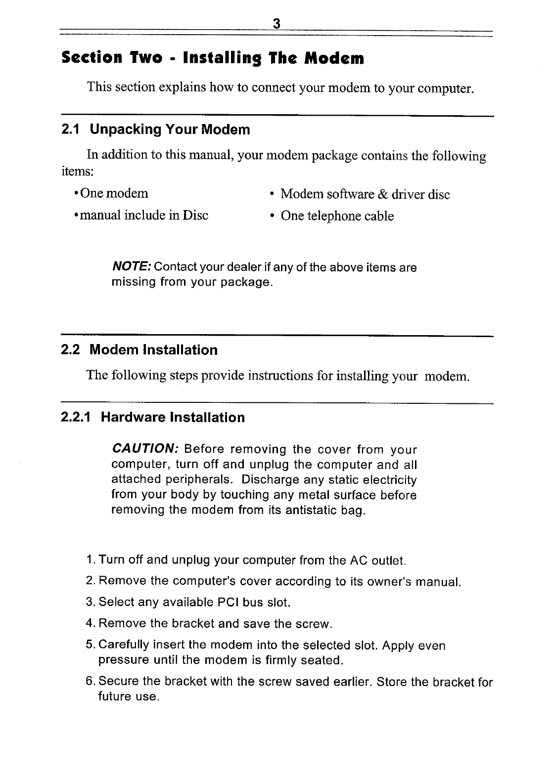 CIS Technology WS-5614PMMU 56K Fax/Data/Voice Modem Card User Manual C0915287 c
