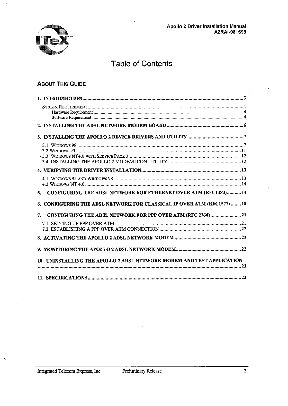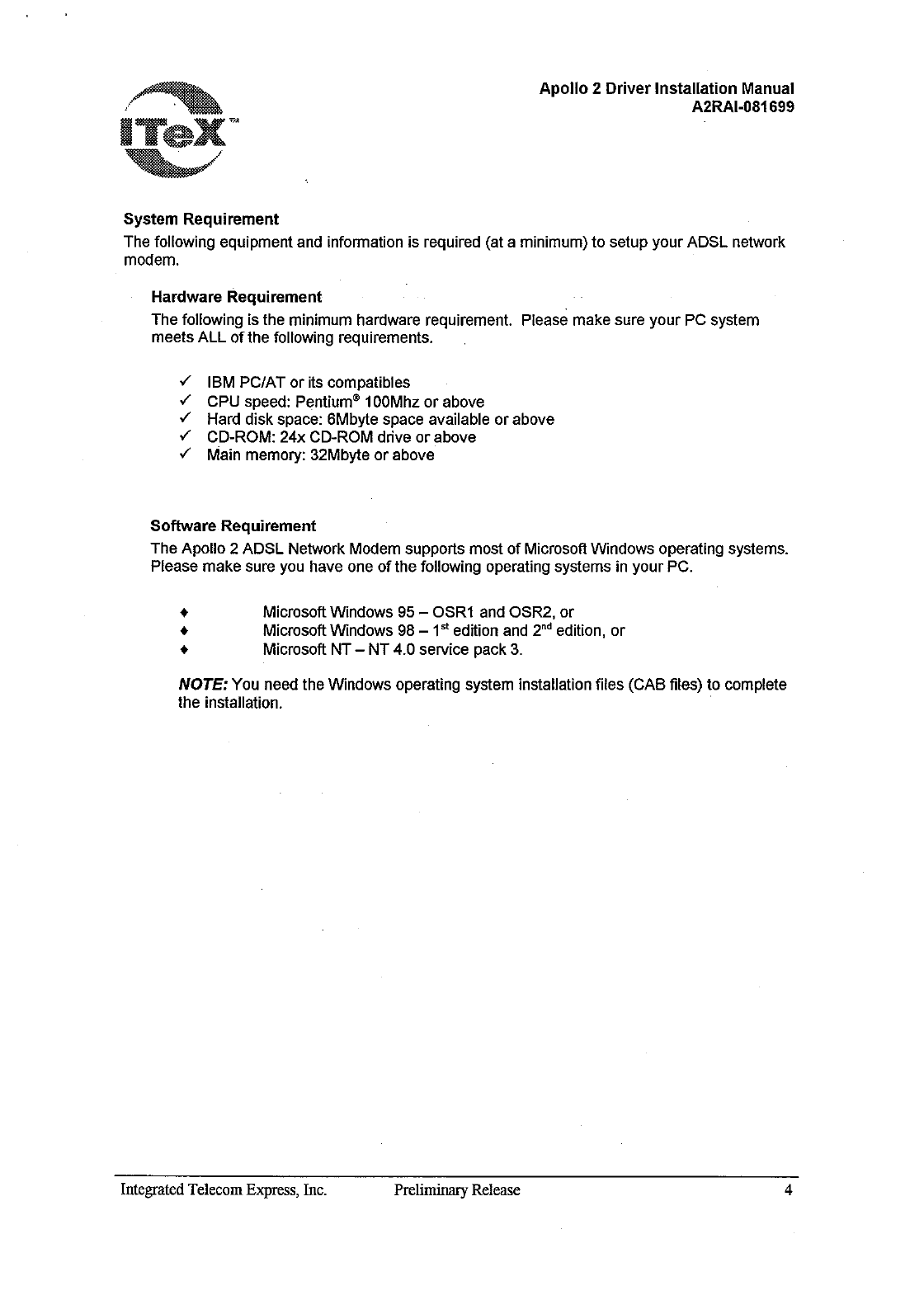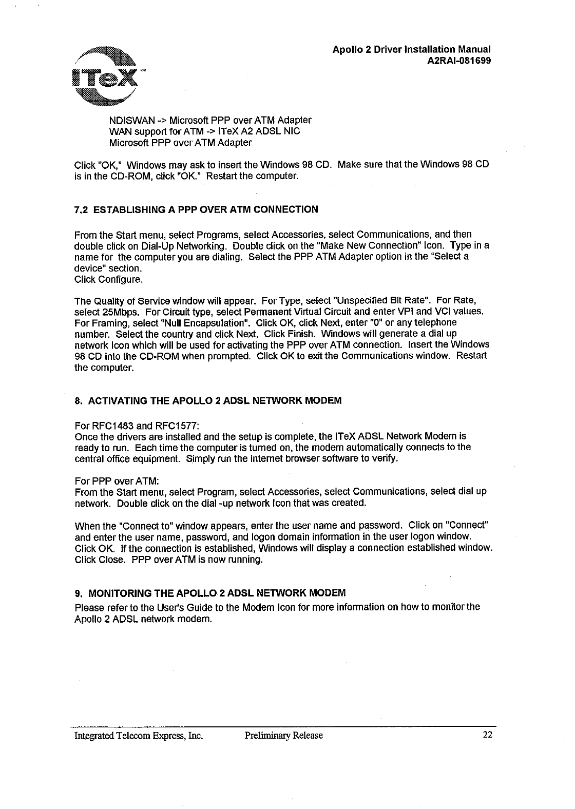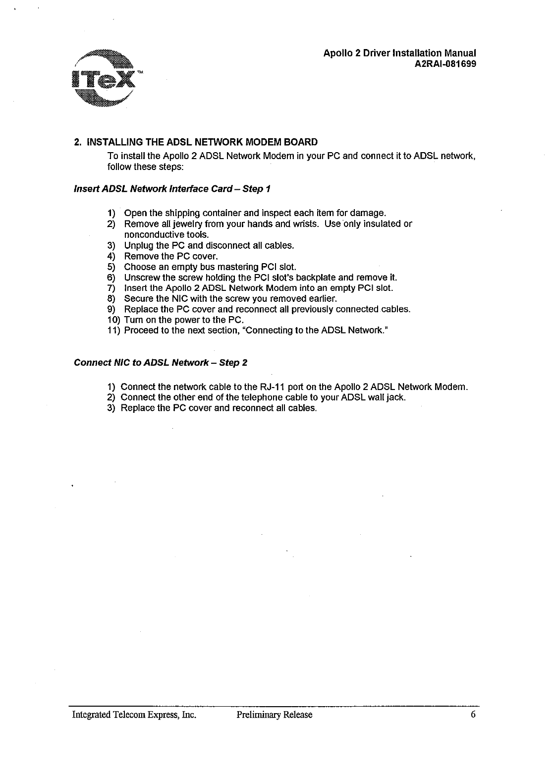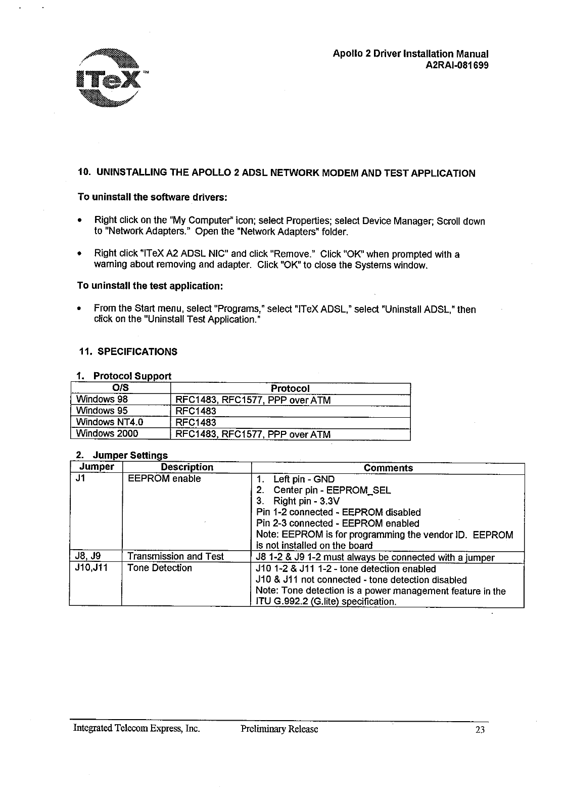 CIS Technology WSAD80PSI ITeX Apollo II ADSL Modem User Manual