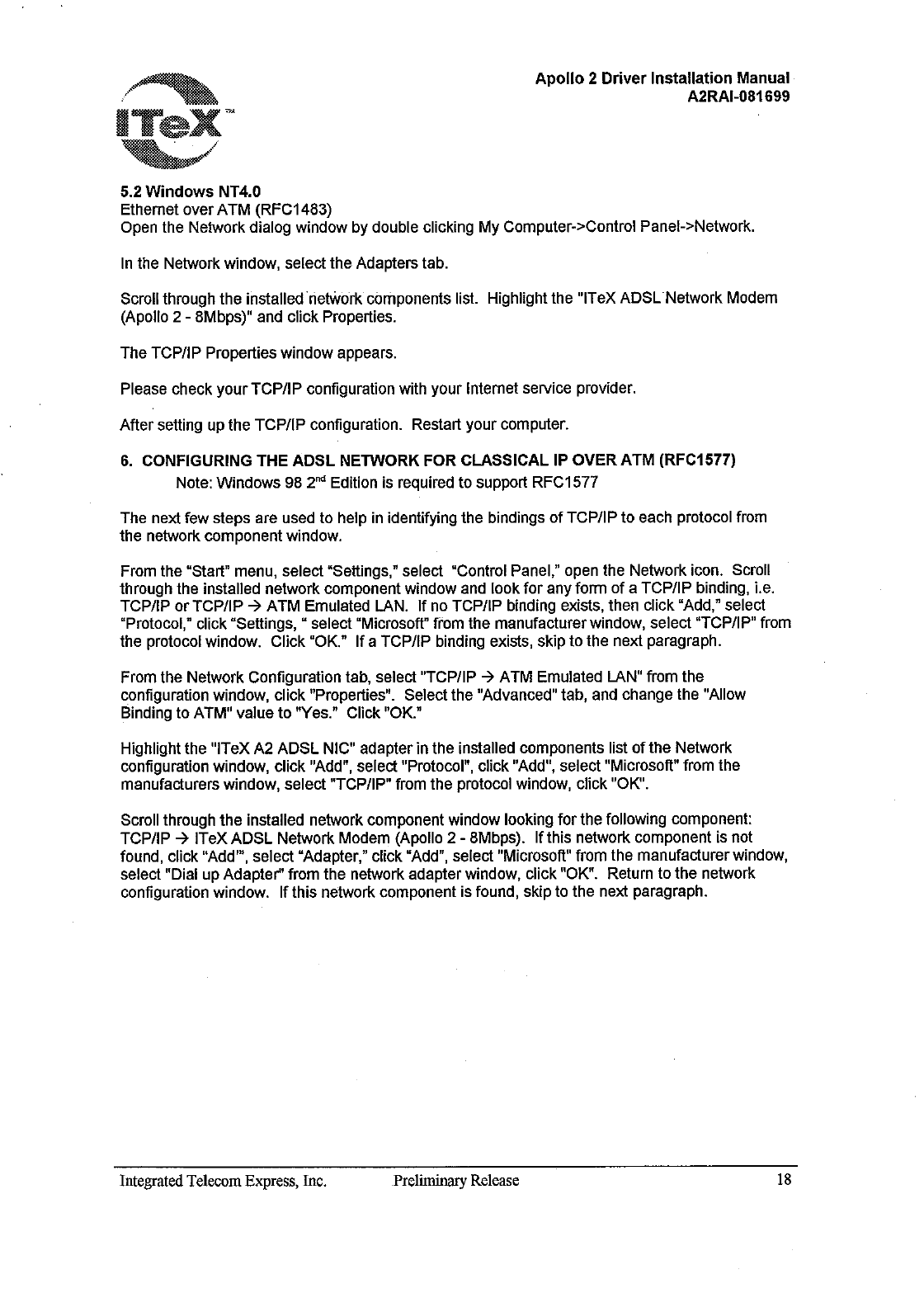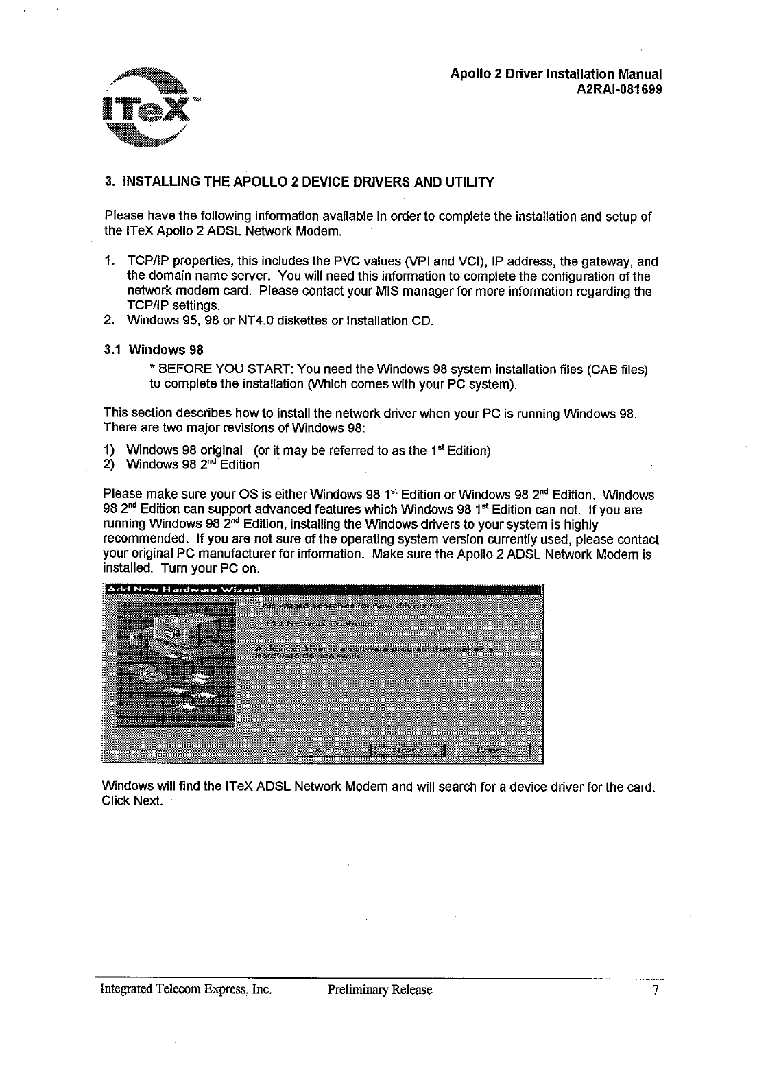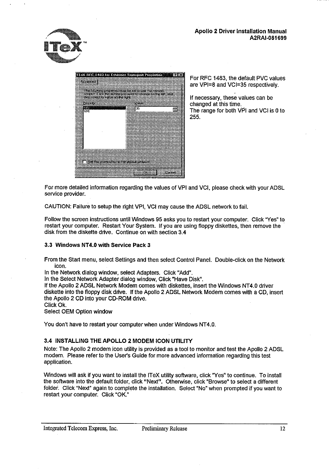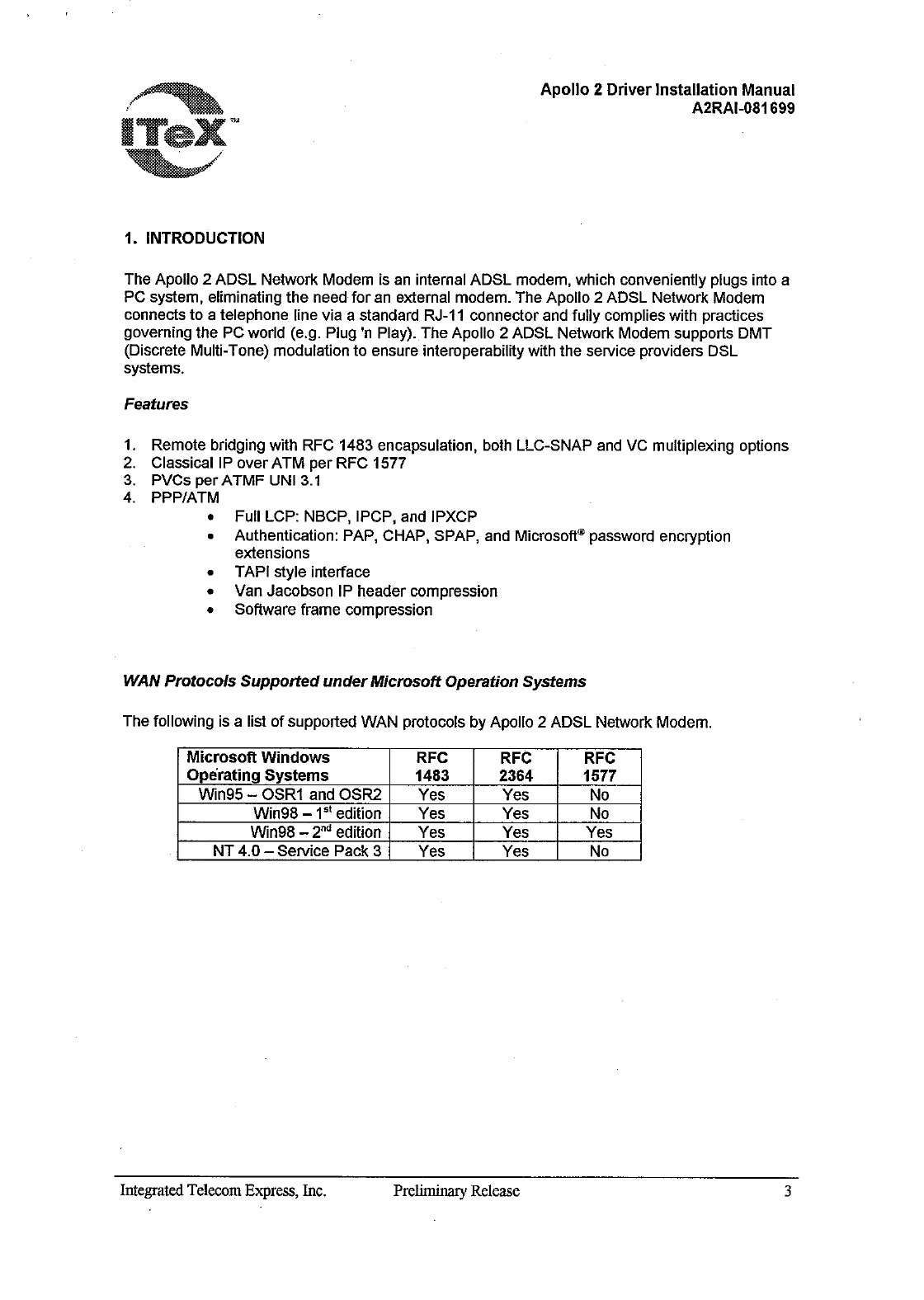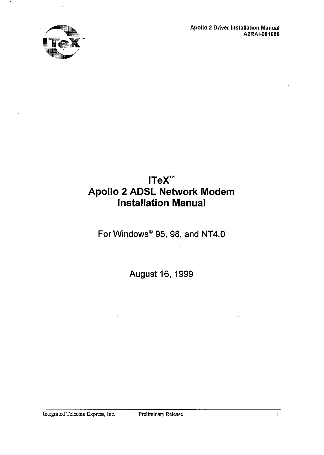 CIS Technology WSAD80PSI ITeX Apollo II ADSL Modem User Manual