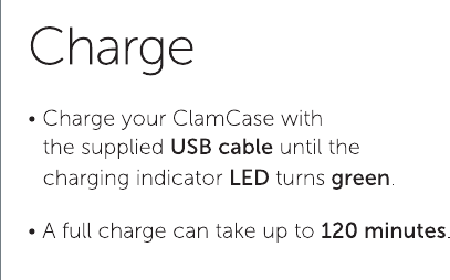 • Recharge the ClamCase battery.