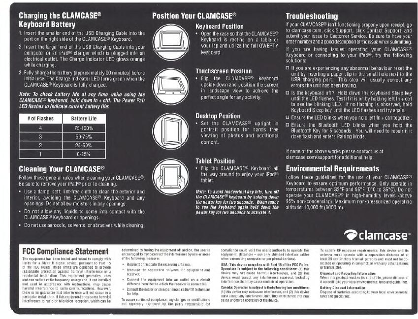 CLAMCASE M3000065 iPad Accessory with KB and BT Radio User Manual 1