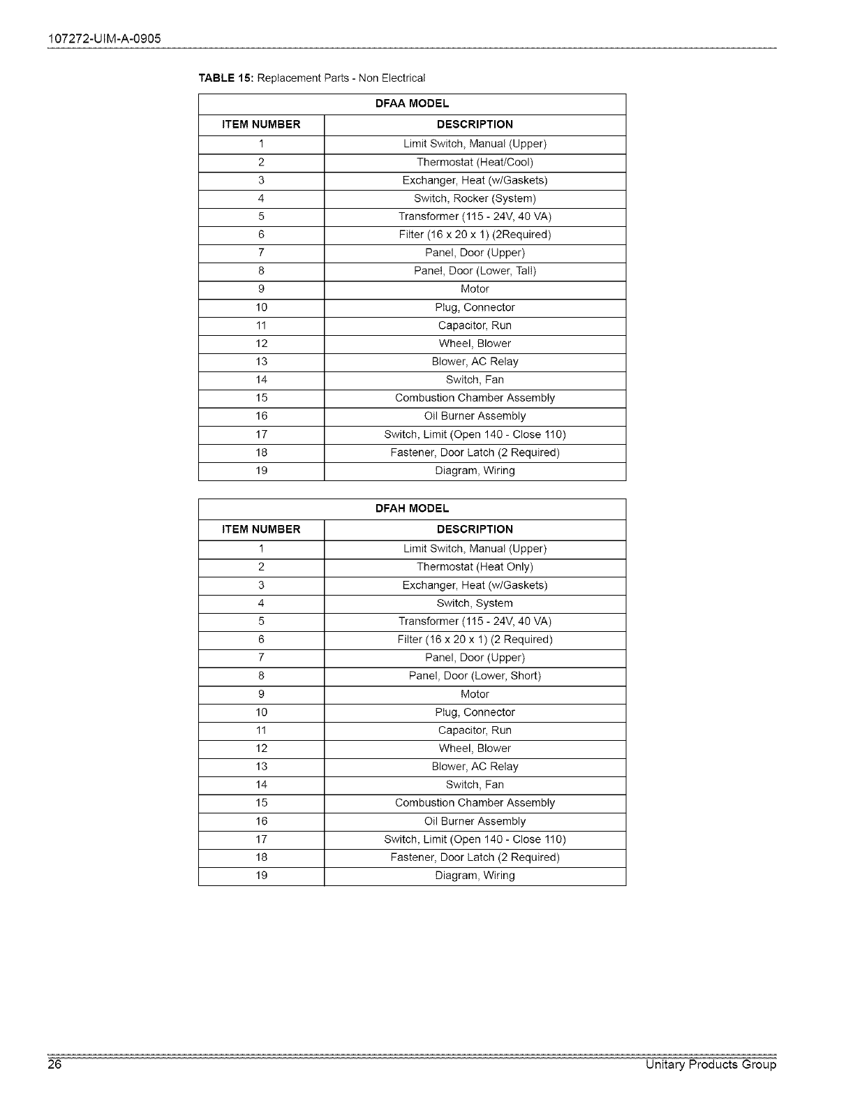 Wiring Diagram for DFAA - Oil-Fired Furnace .......................... 27