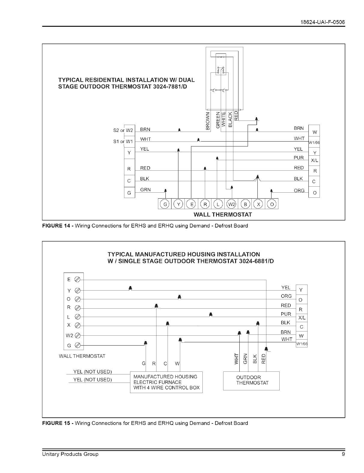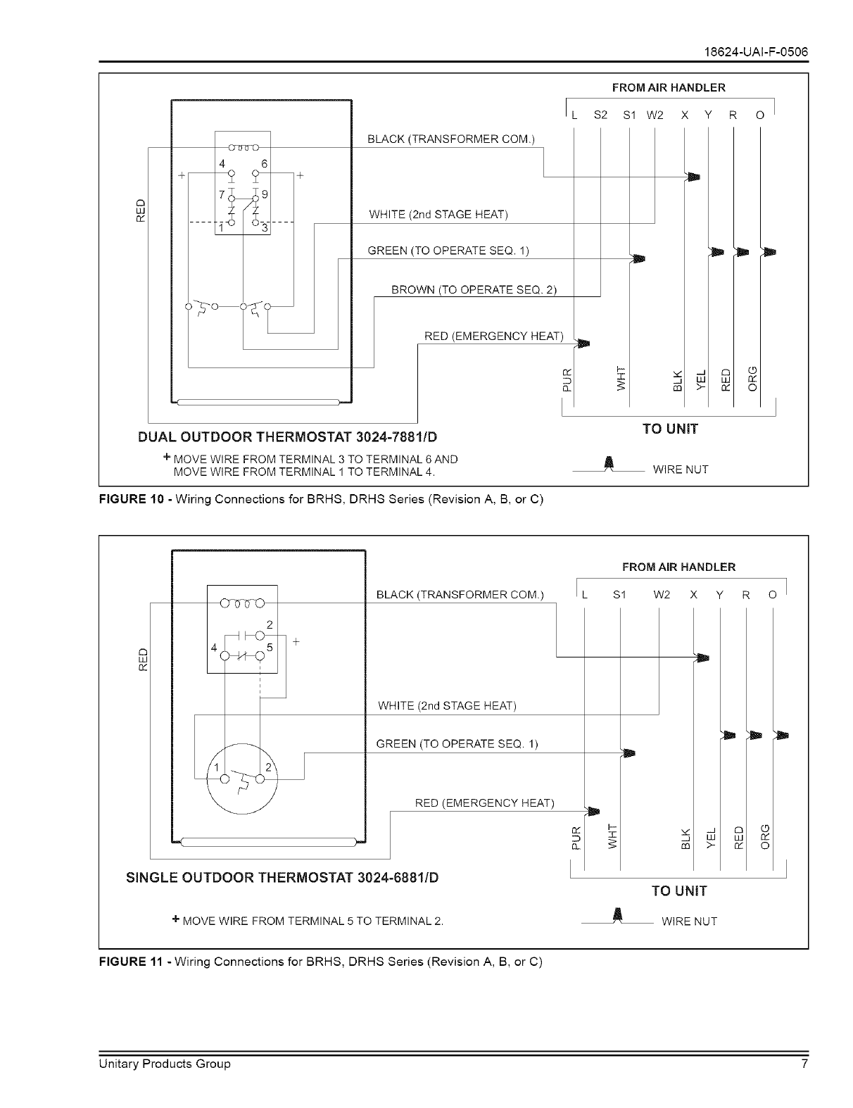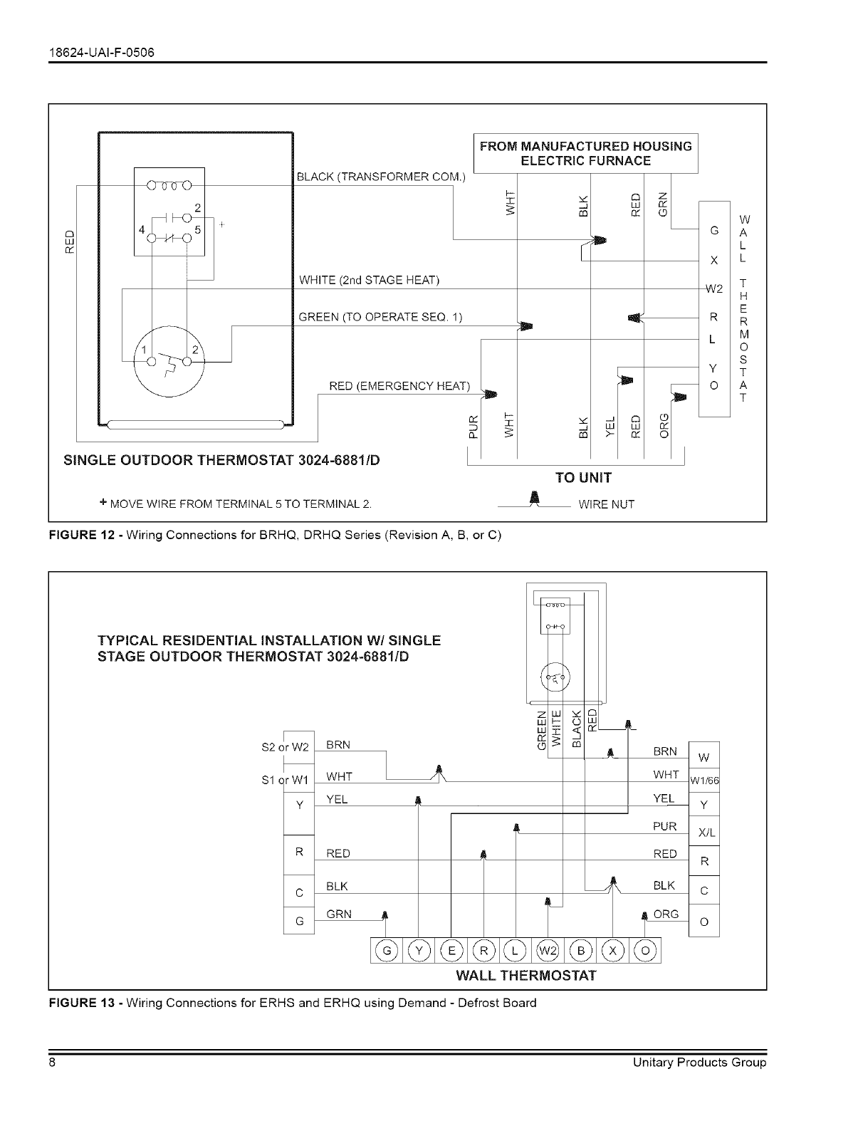 Use Figures 8 (dual thermostat) or 9 (single thermostat) for