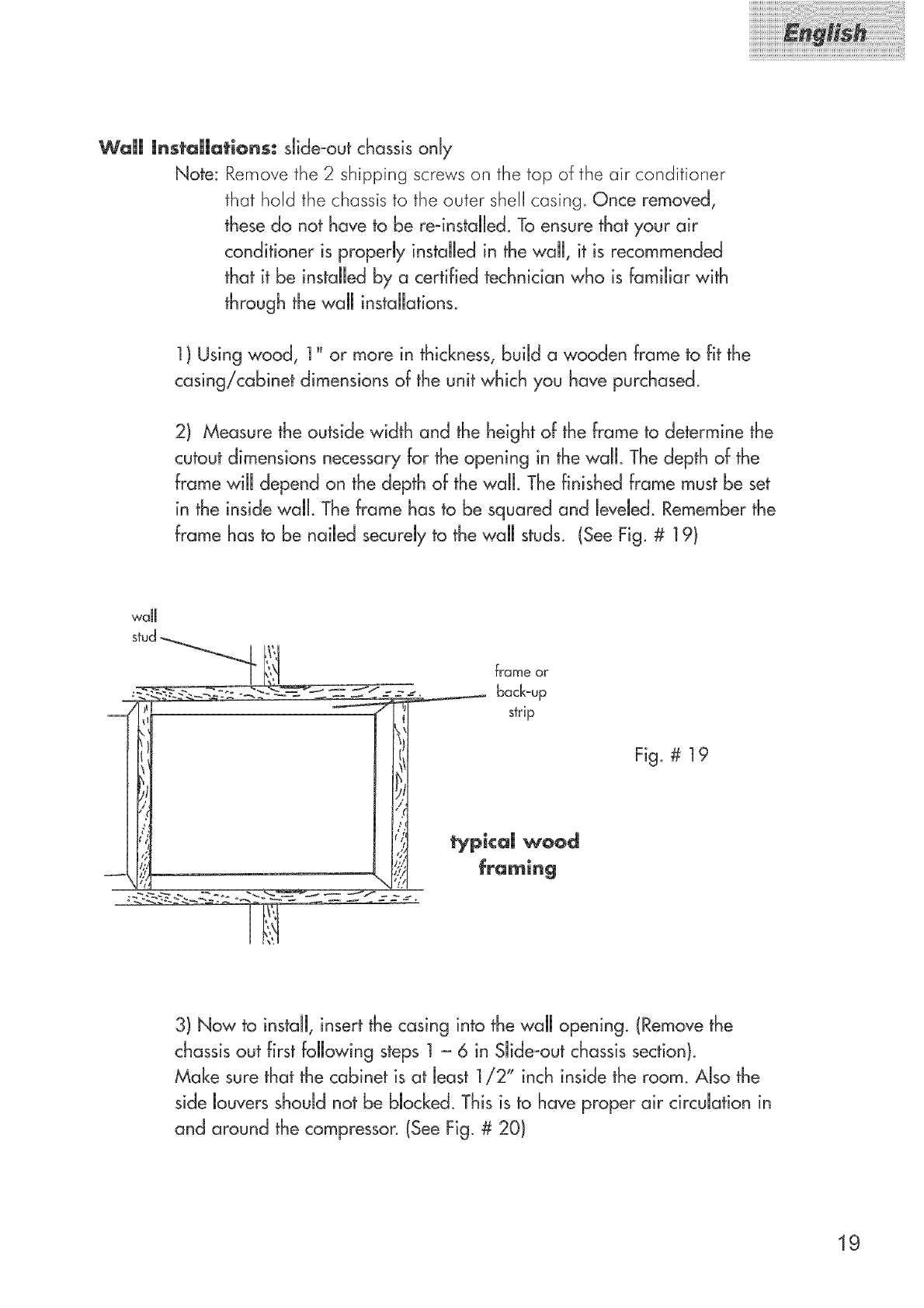frame has to be nailed securely to the waJJstuds. (See Fig. # 19)