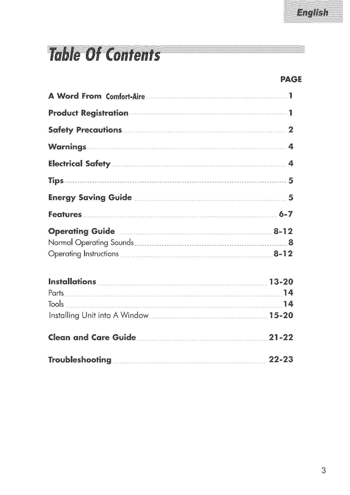 COMFORT AIRE Air Conditioner Room (42) Manual L0705032