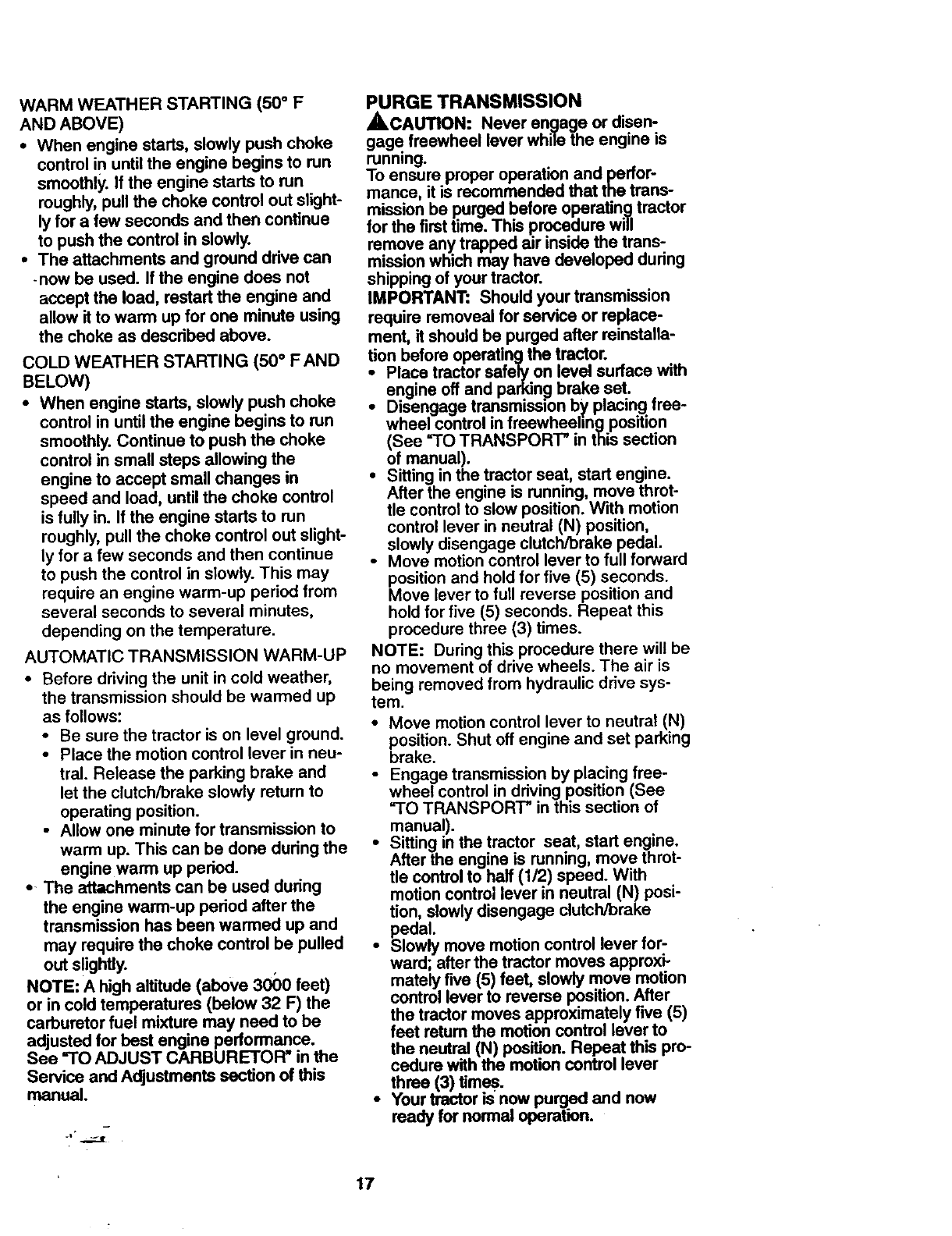 date of purchase, warranty service is available by taking your Craftsman riding equip-
