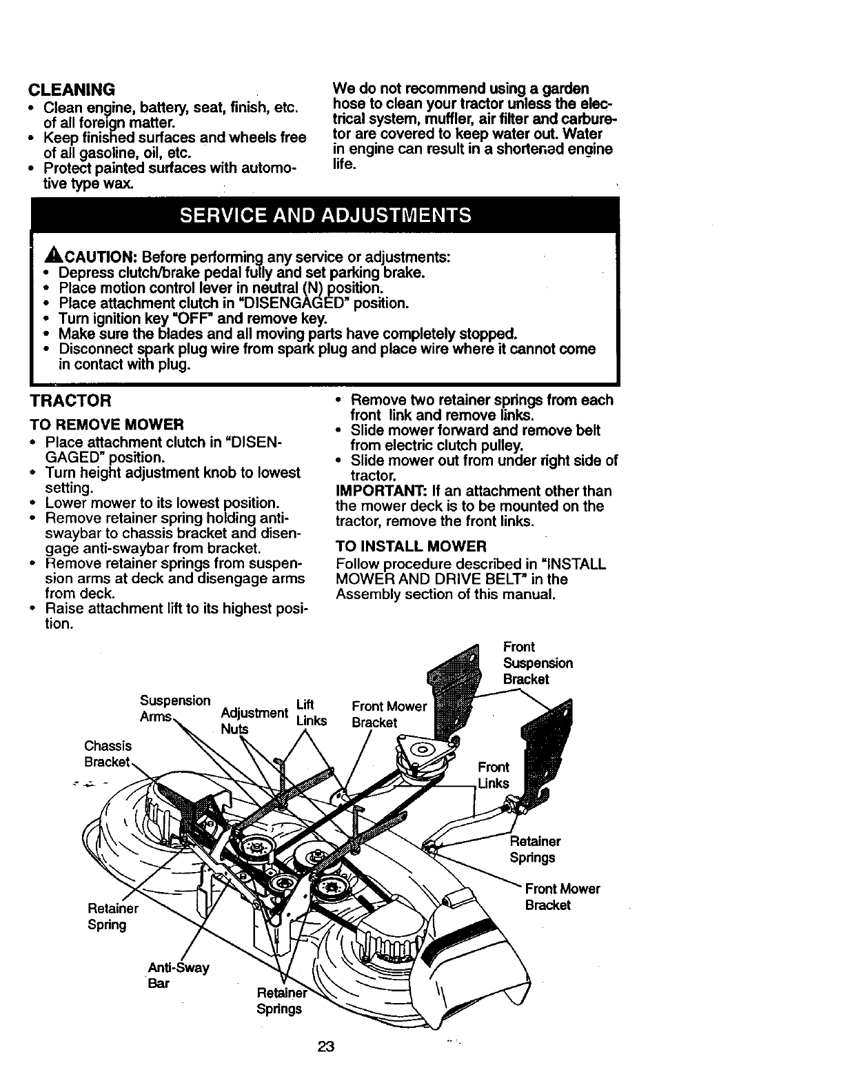 Service and Adjustments ...................... 23