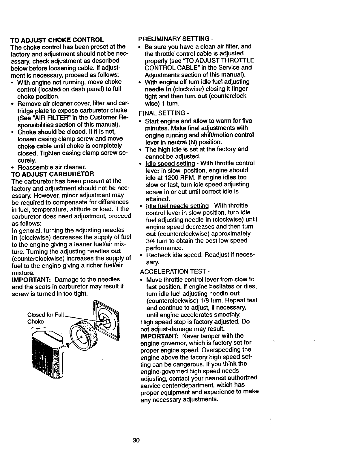 tained, lubricated and tuned up according to the instructions in the owner's manual,
