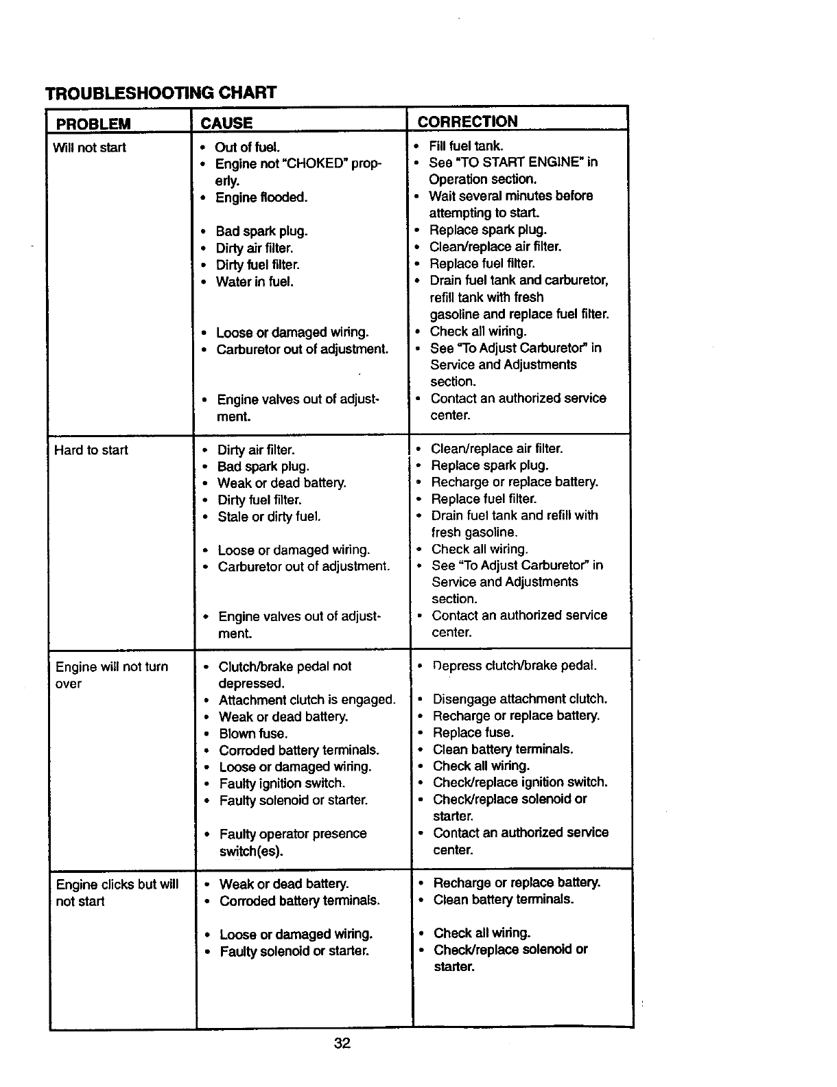 •Repairs necessary because of operator abuse, negligence, improper storage or acci-