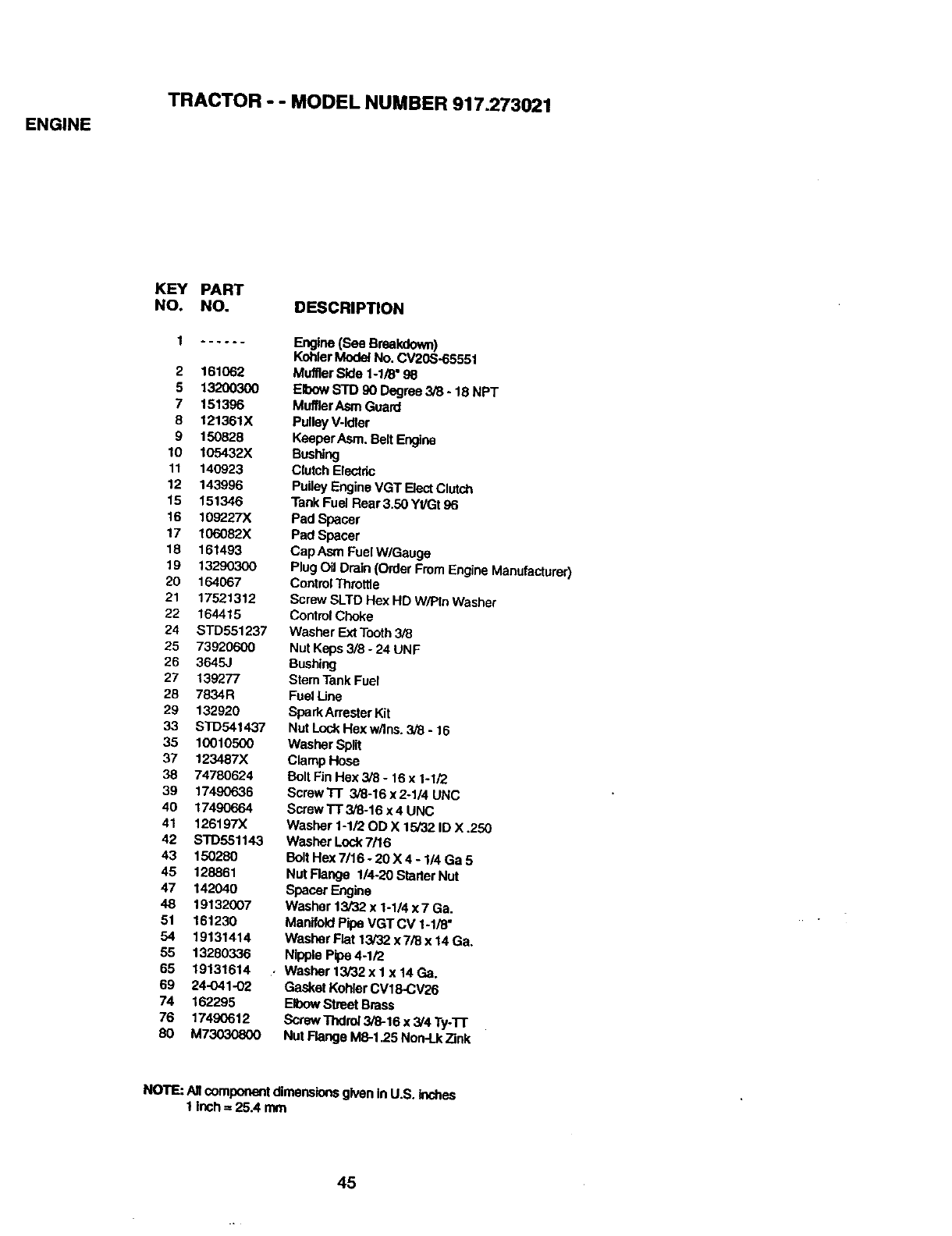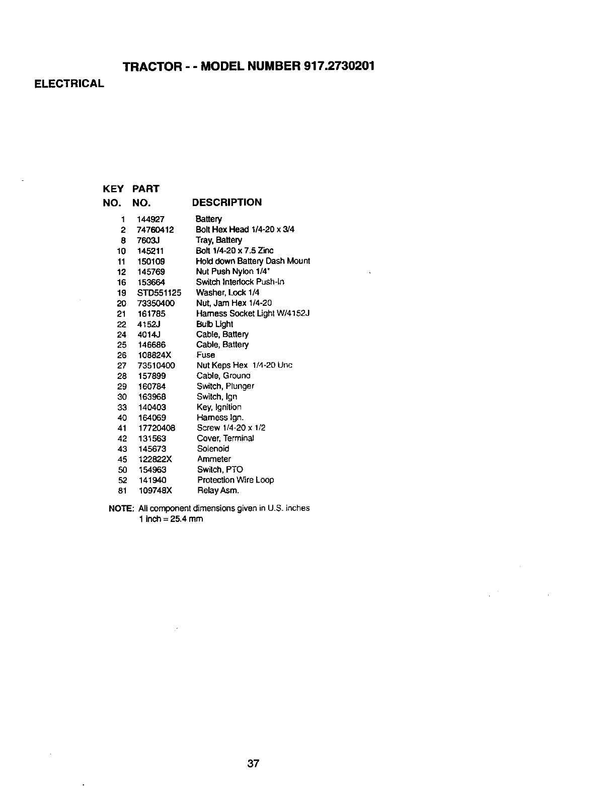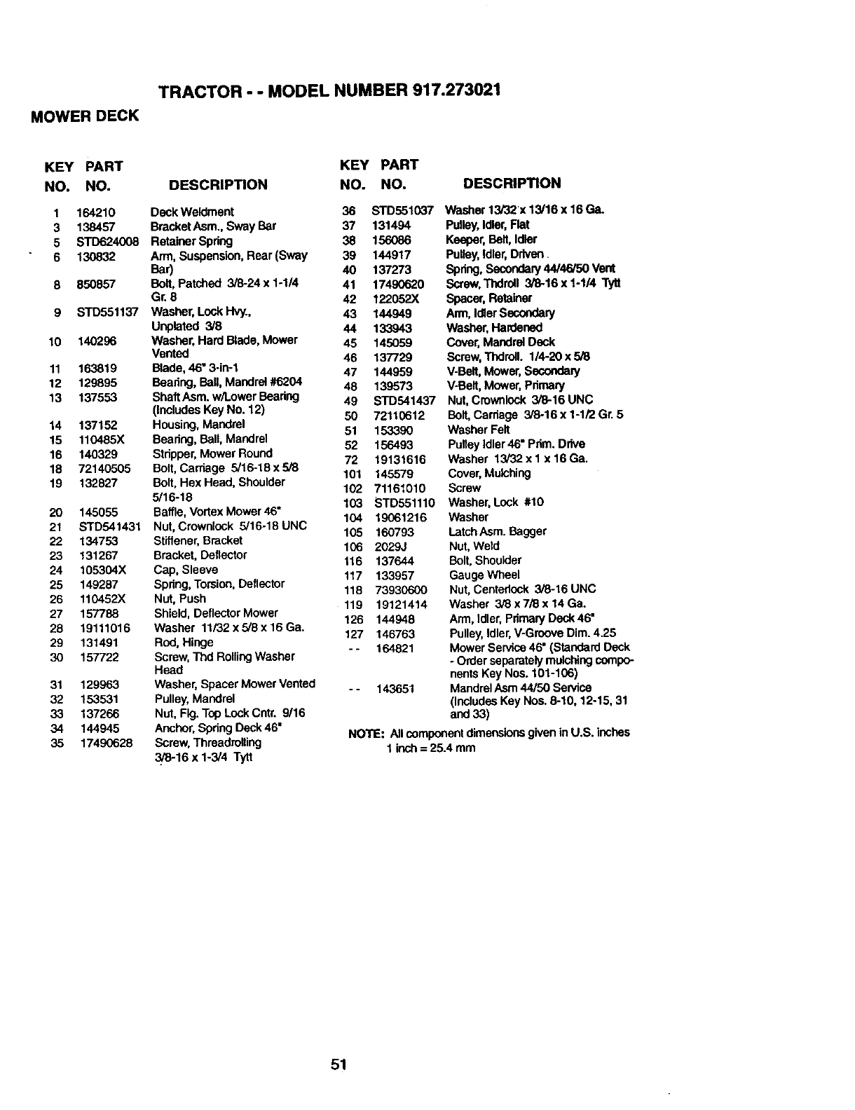 •Model Number •Part Description