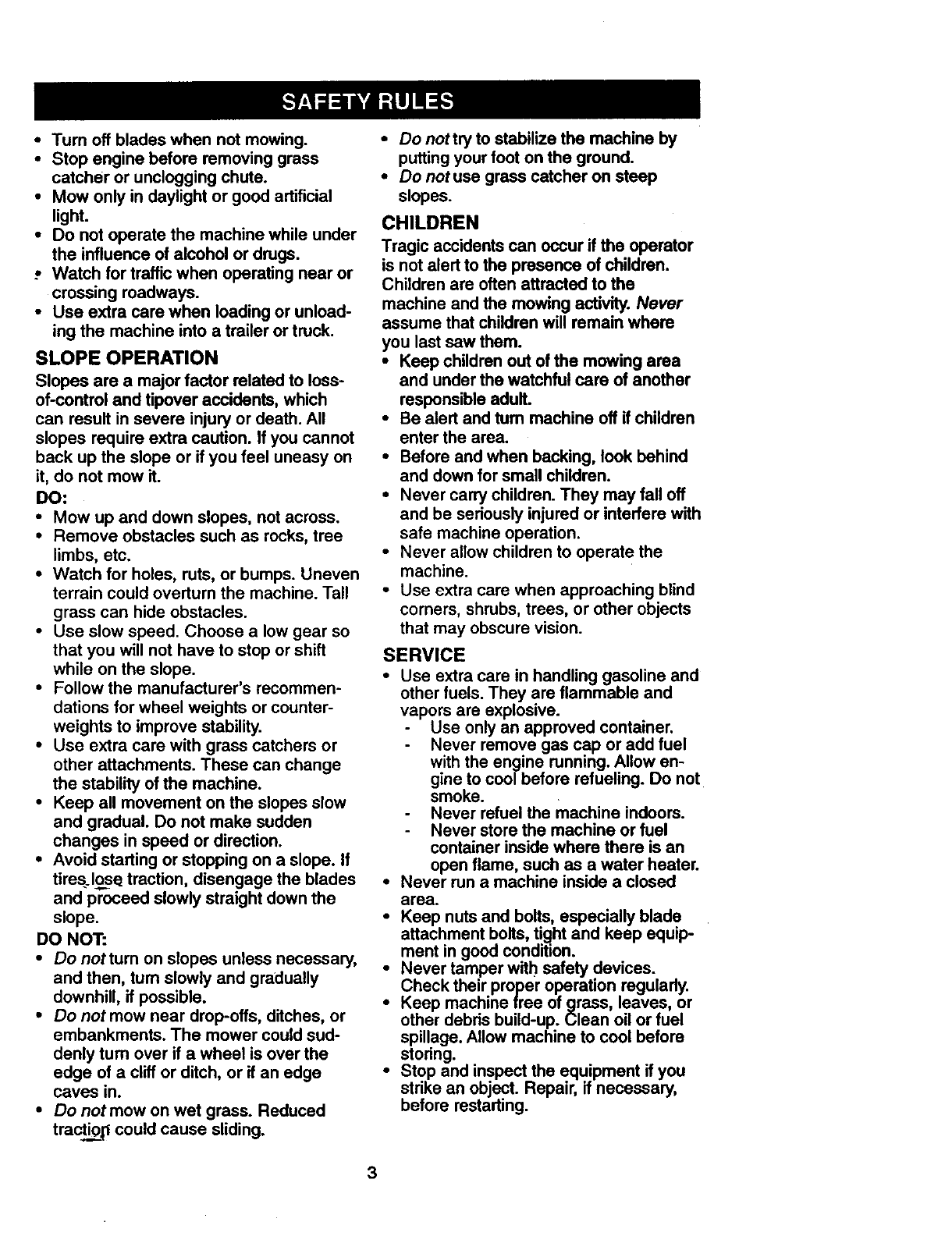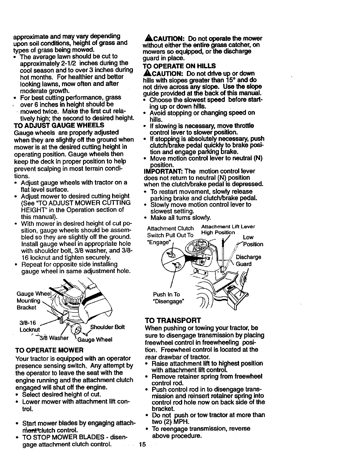 •Do not mow in reverse unless absolute-