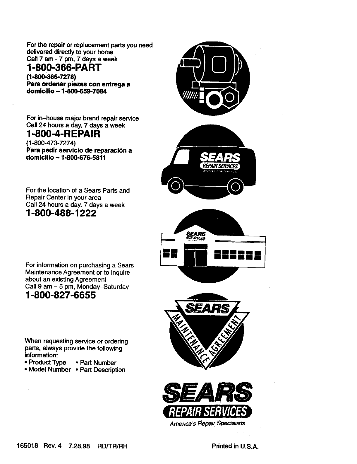 165018 Rev. 4 7.28.98 RD/TR/RH Pdnted in U.S.A,