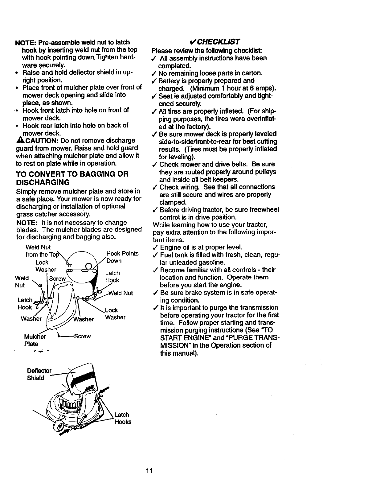 • Stop engine before removing grass