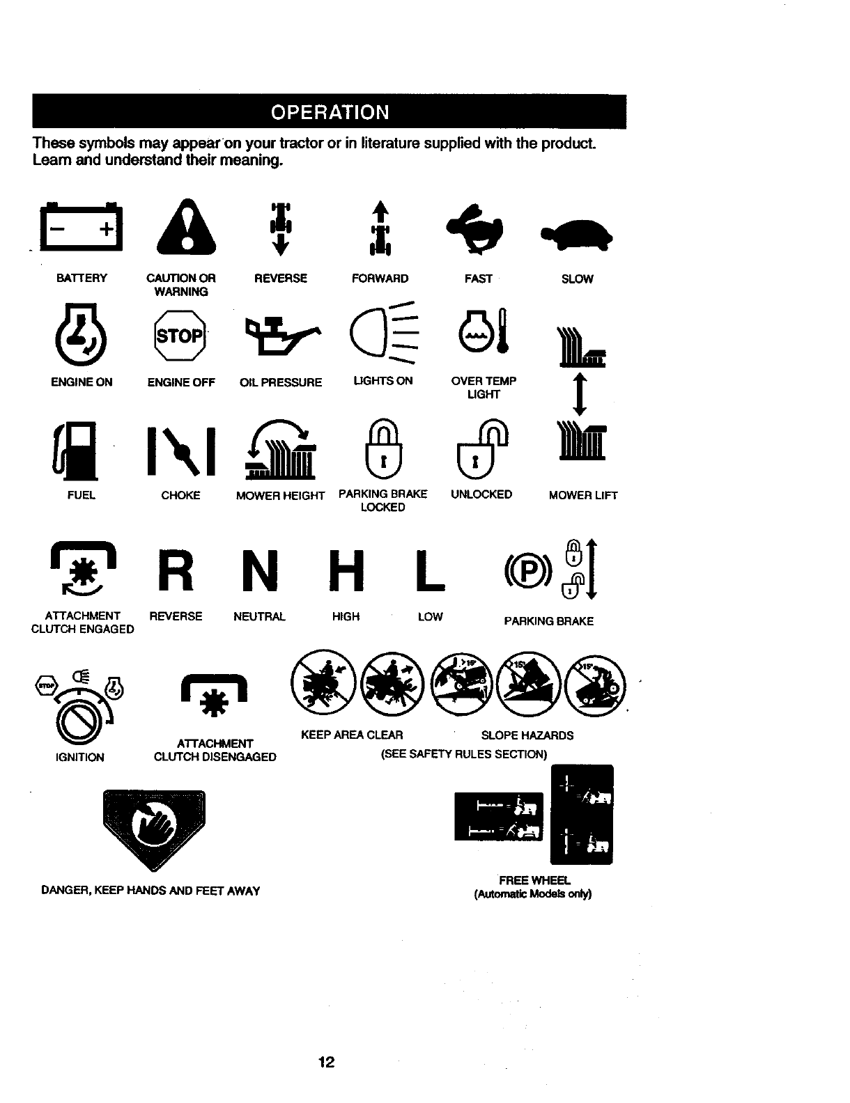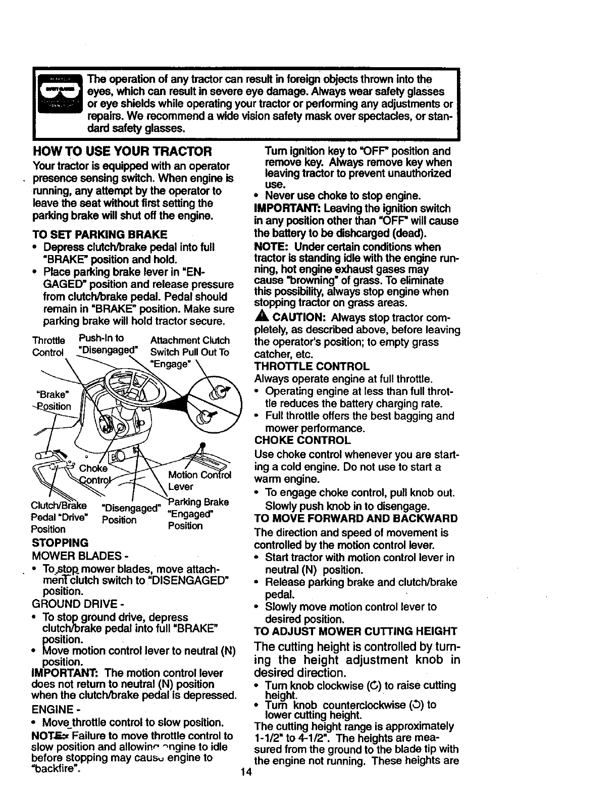 tended. Always turn off blades, set park-