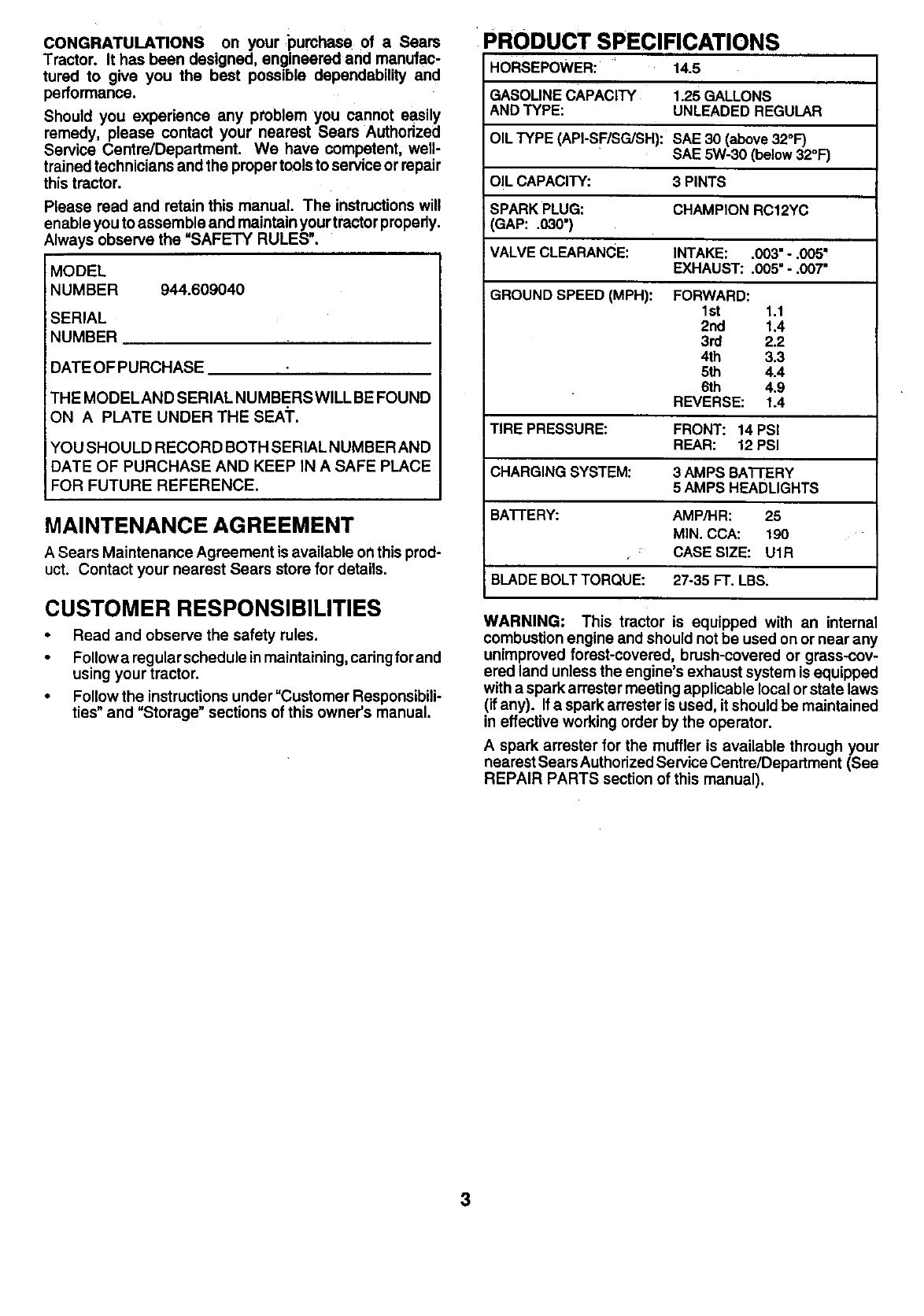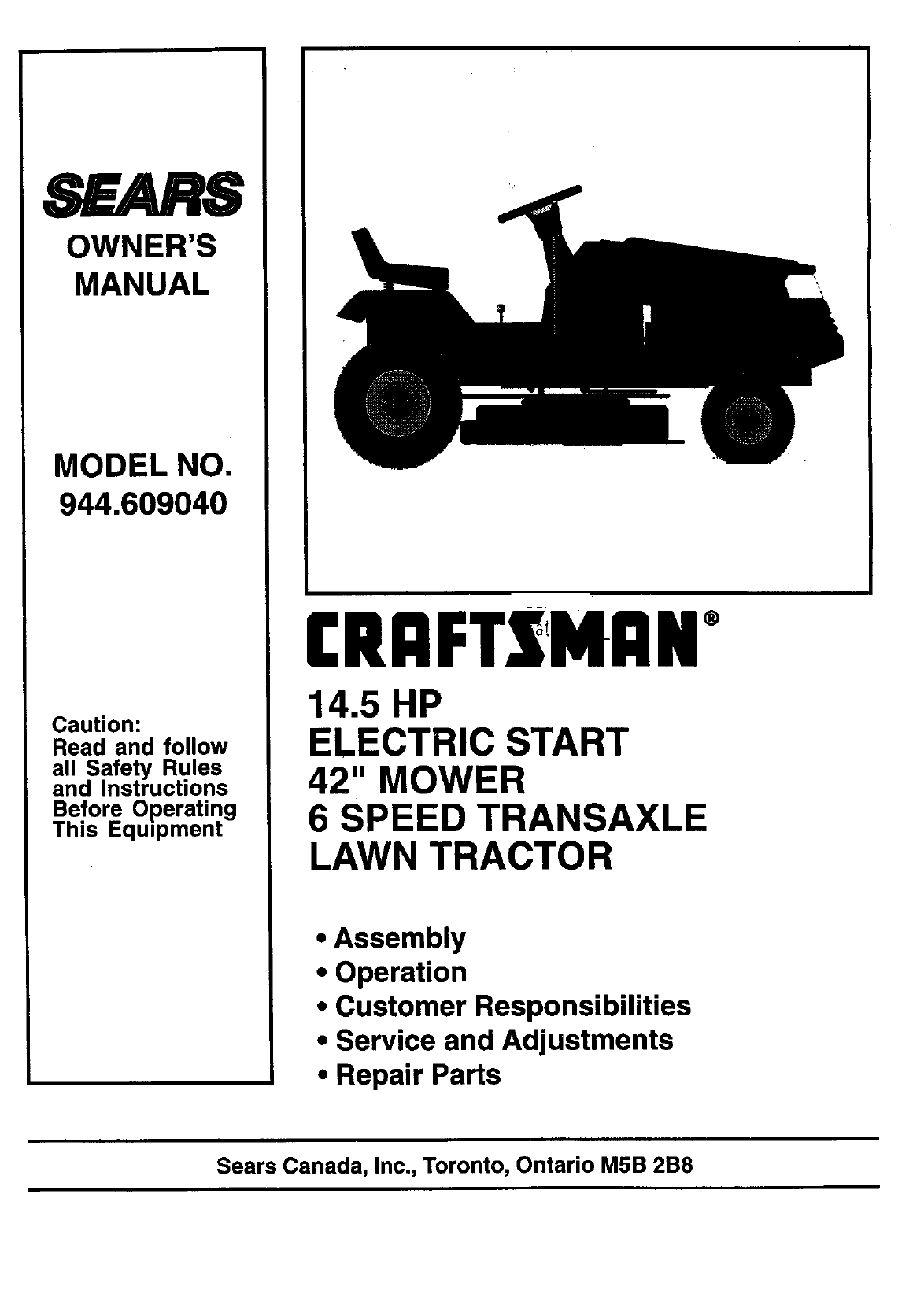 CRAFTSMAN Lawn, Tractor Manual 99020016