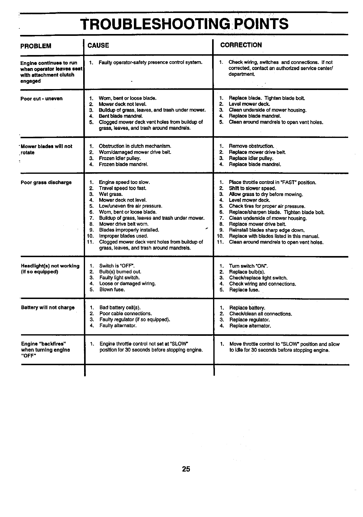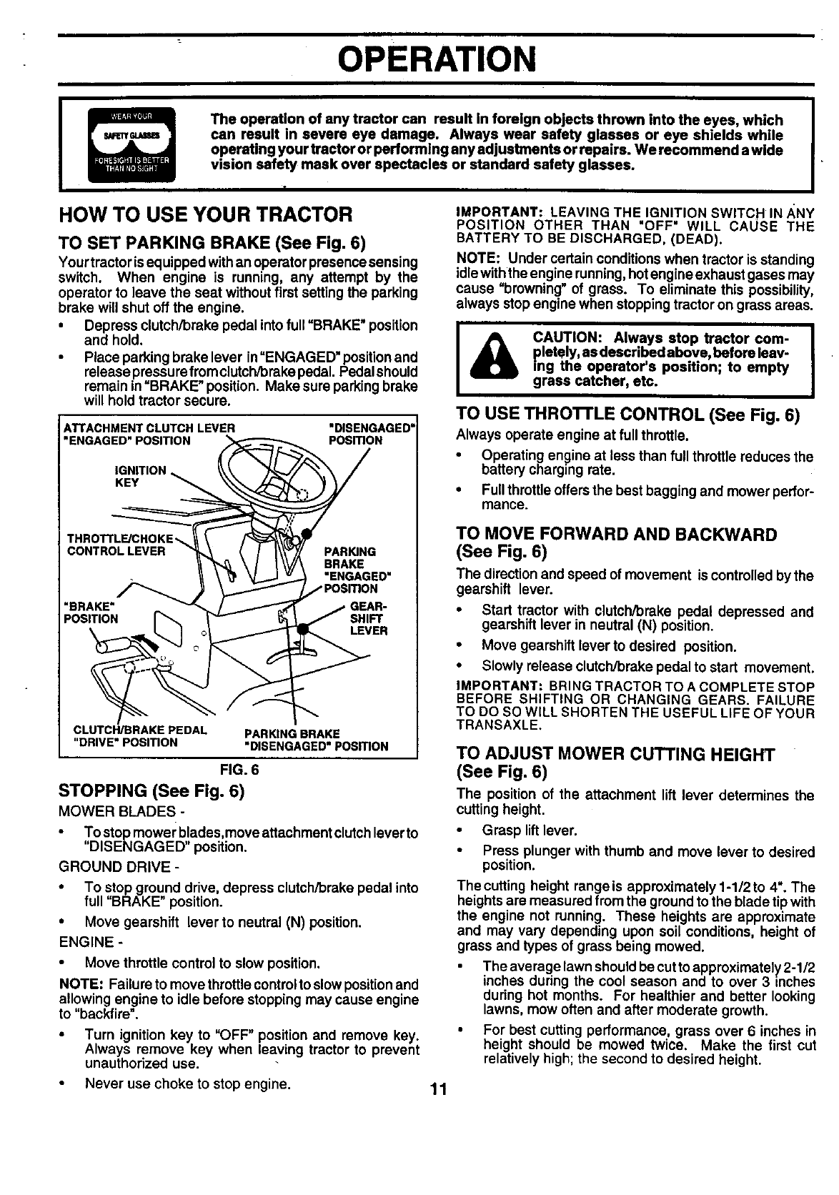 blades,set parkingbrake, stop engine,and remove keys
