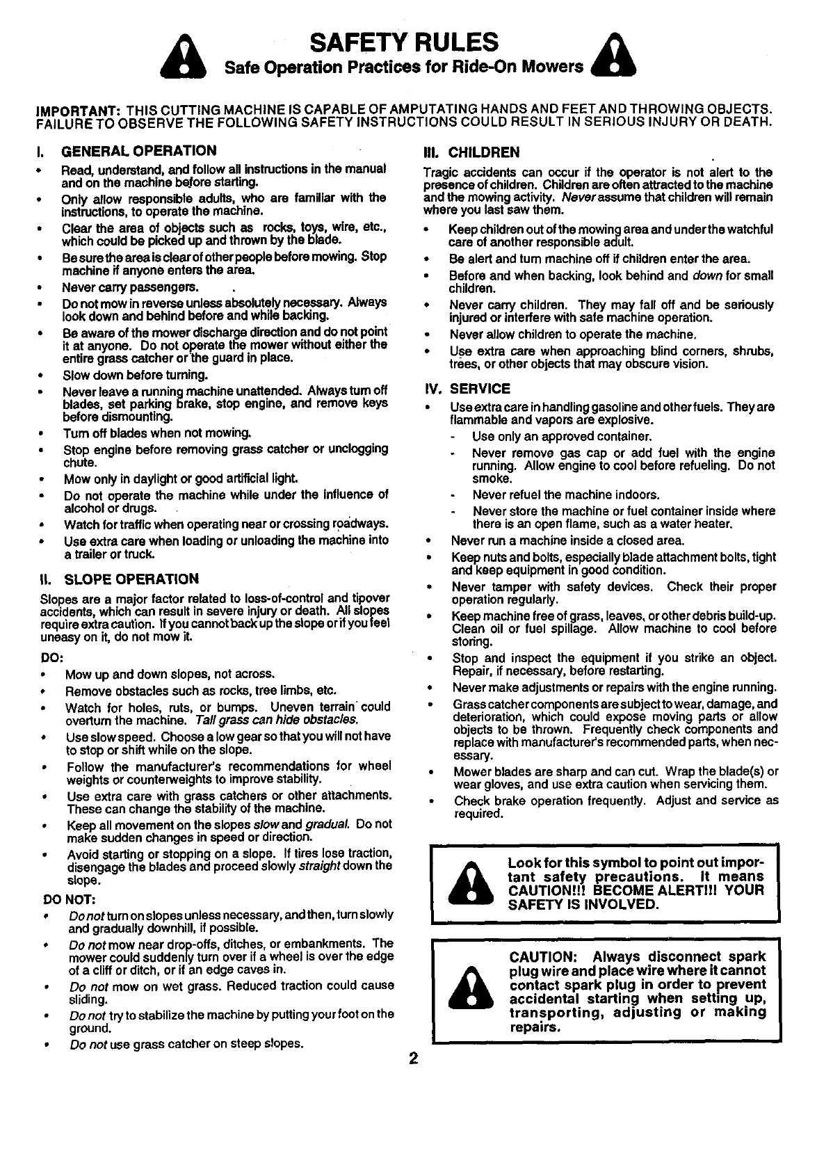 •Do not use grass catcher on steep slopes.