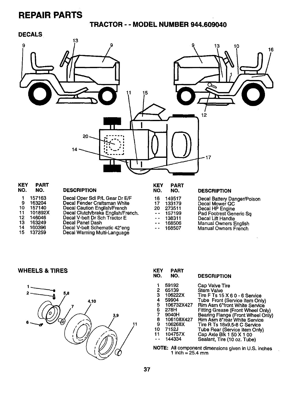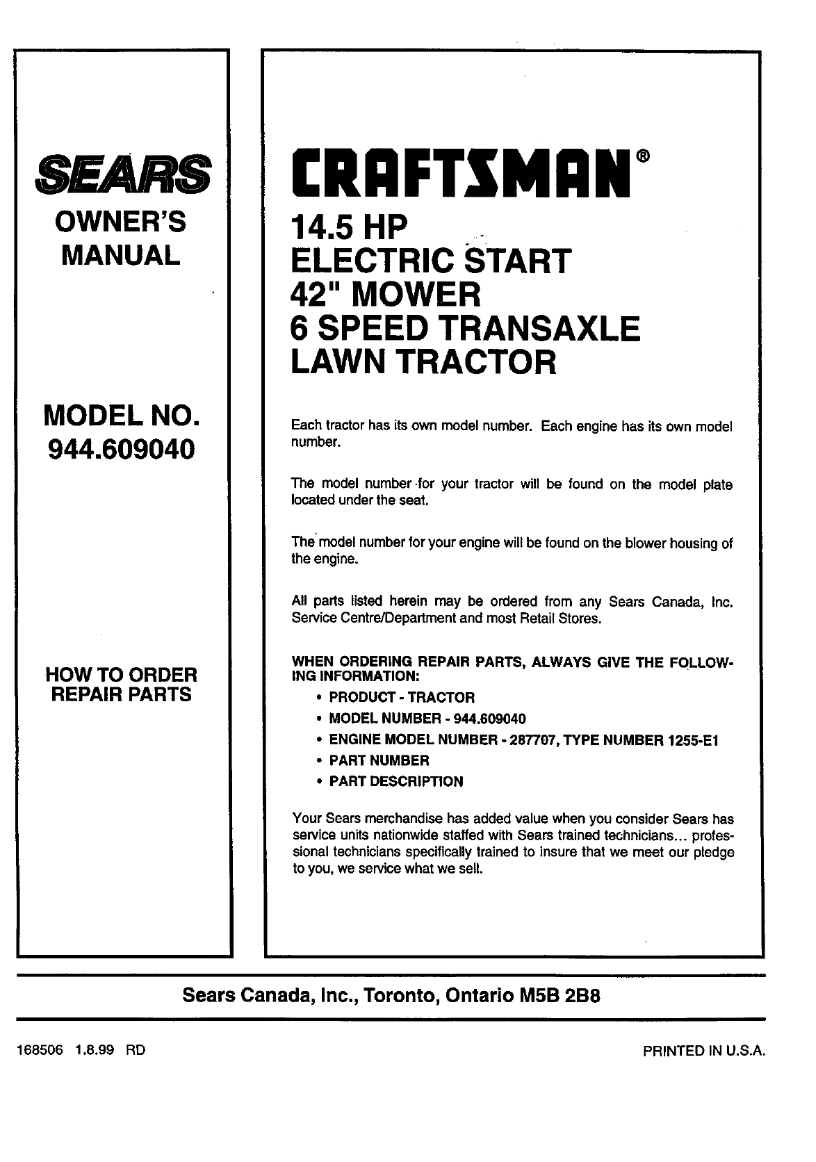 All parts listed herein may be ordered from any Sears Canada, Inc.
