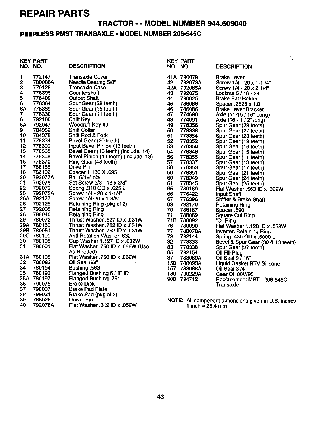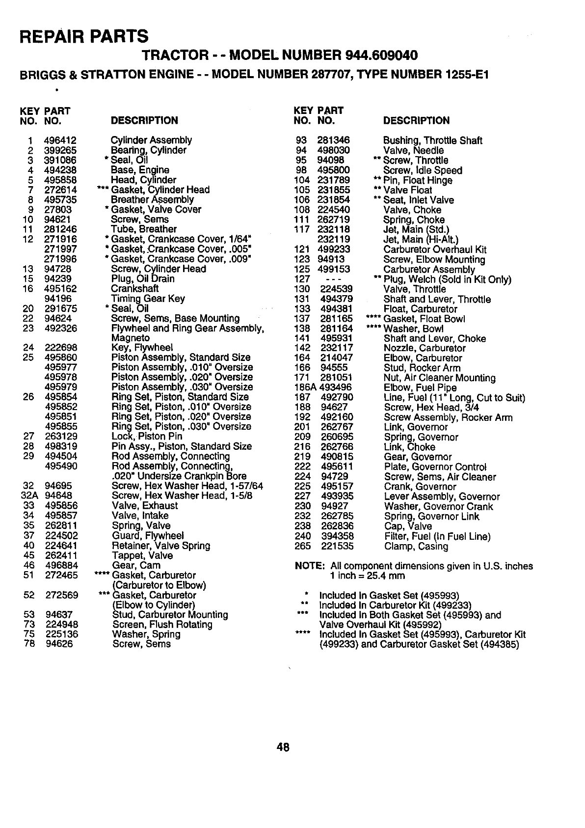 WHEN ORDERING REPAIR PARTS, ALWAYS GIVE THE FQLLOW-
