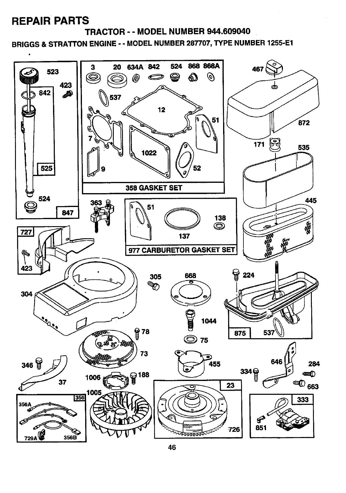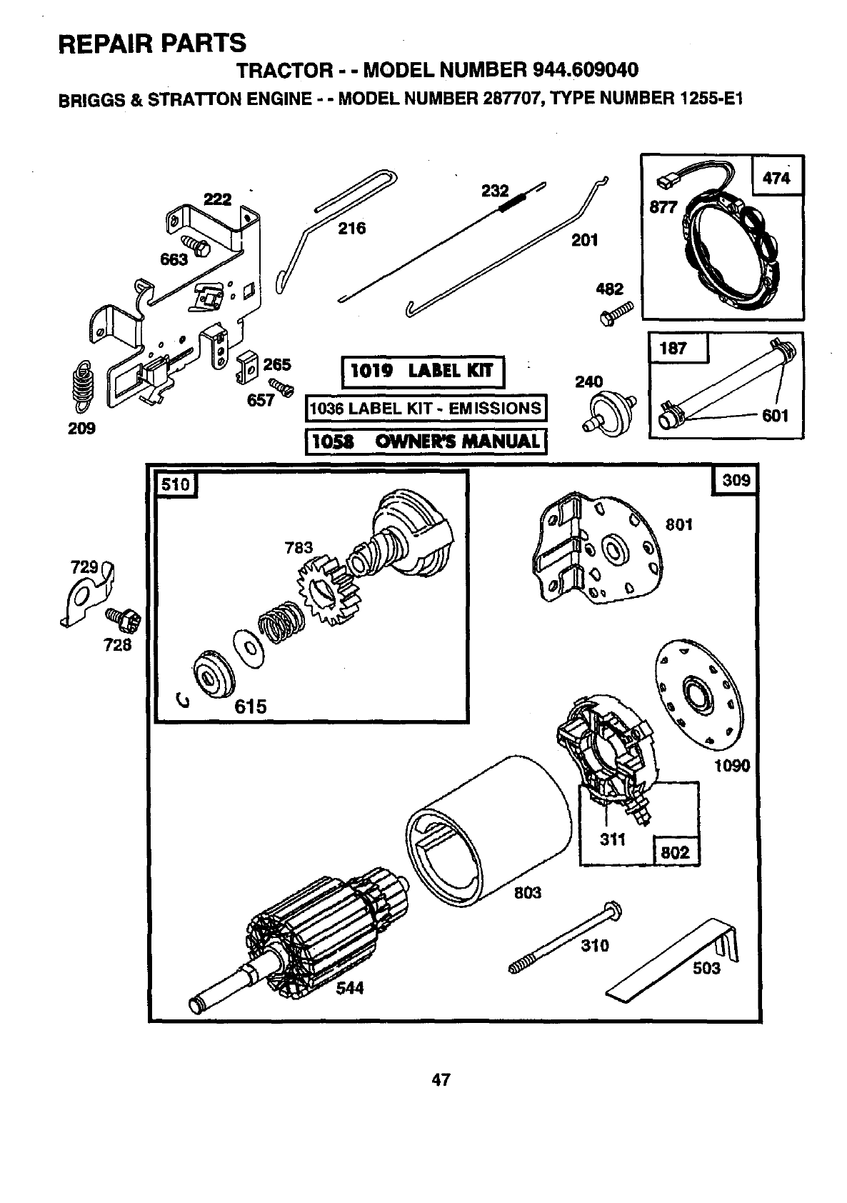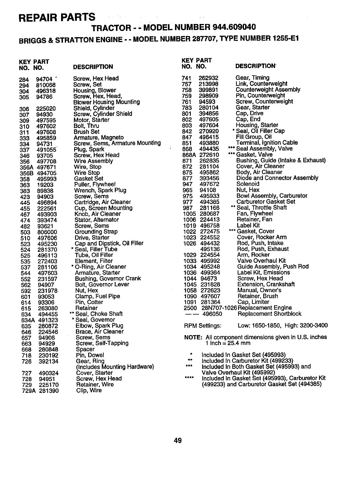 •ENGINE MODEL NUMBER -287707, TYPE NUMBER 1255-E1