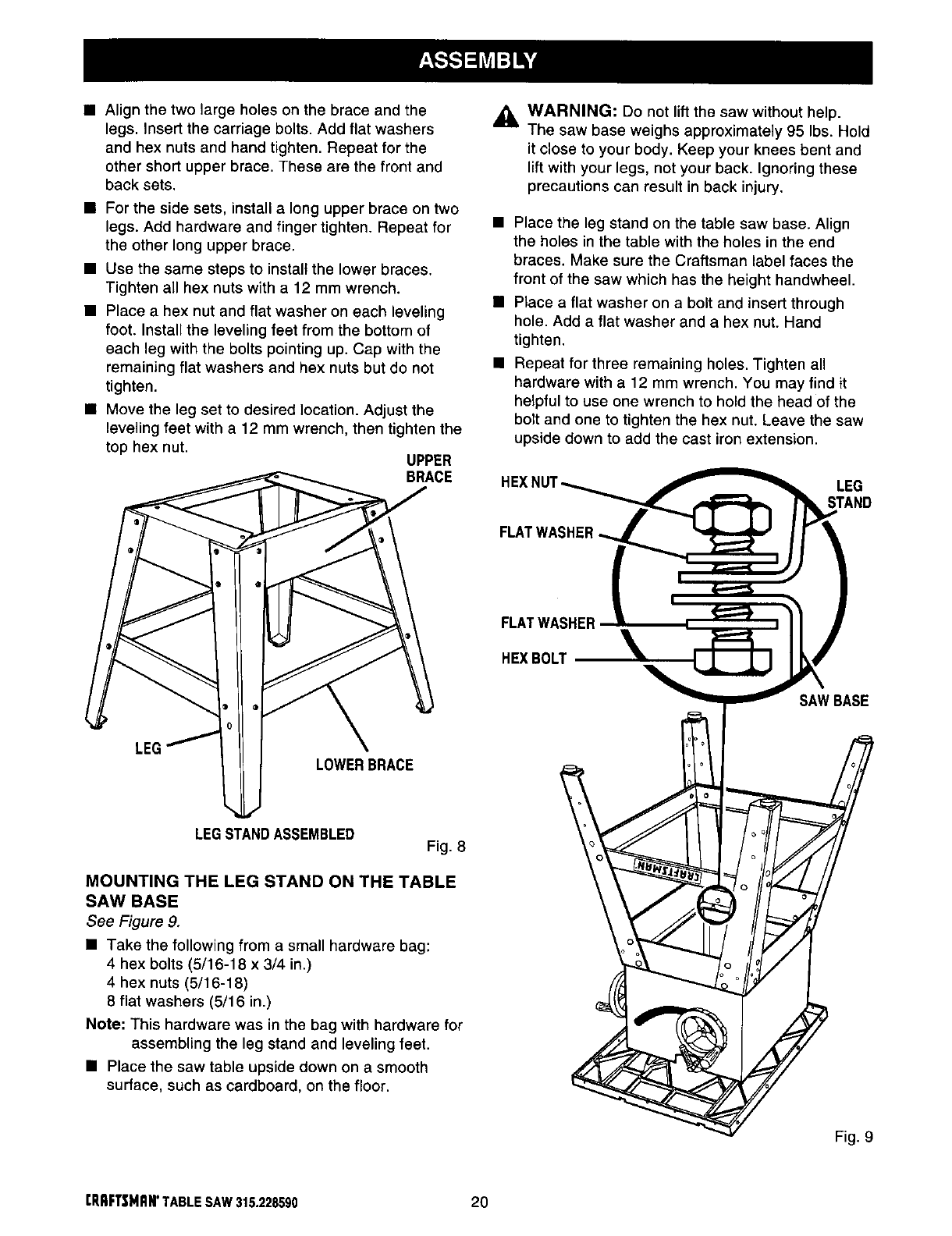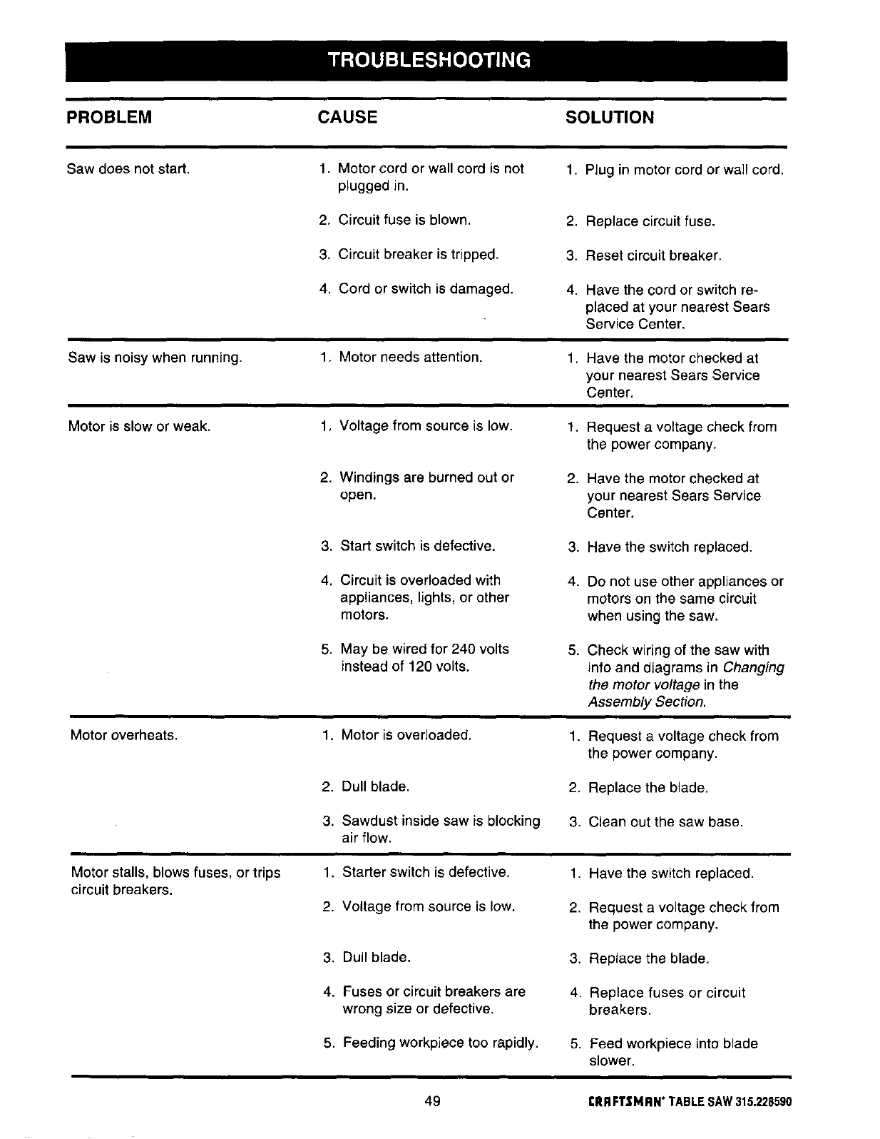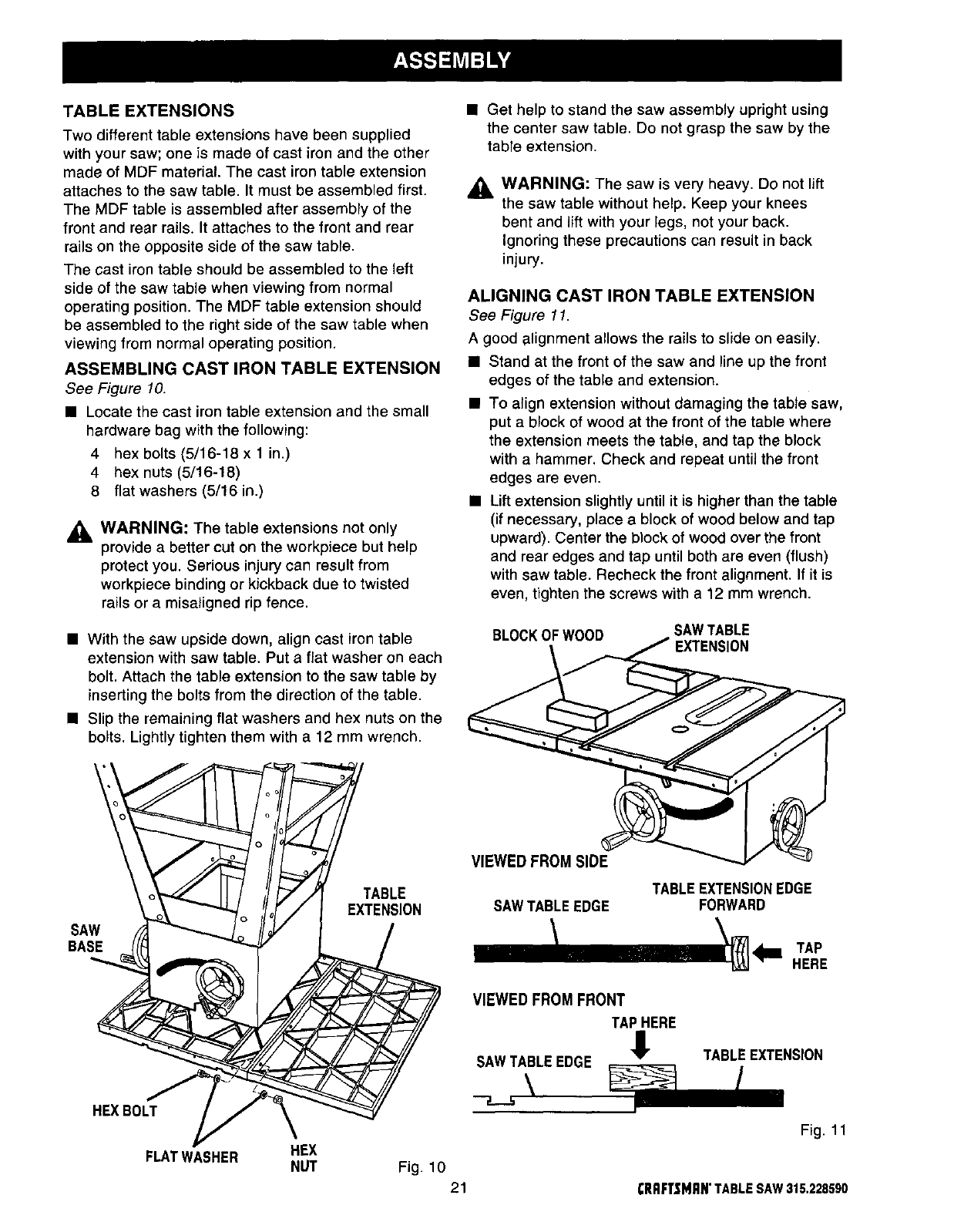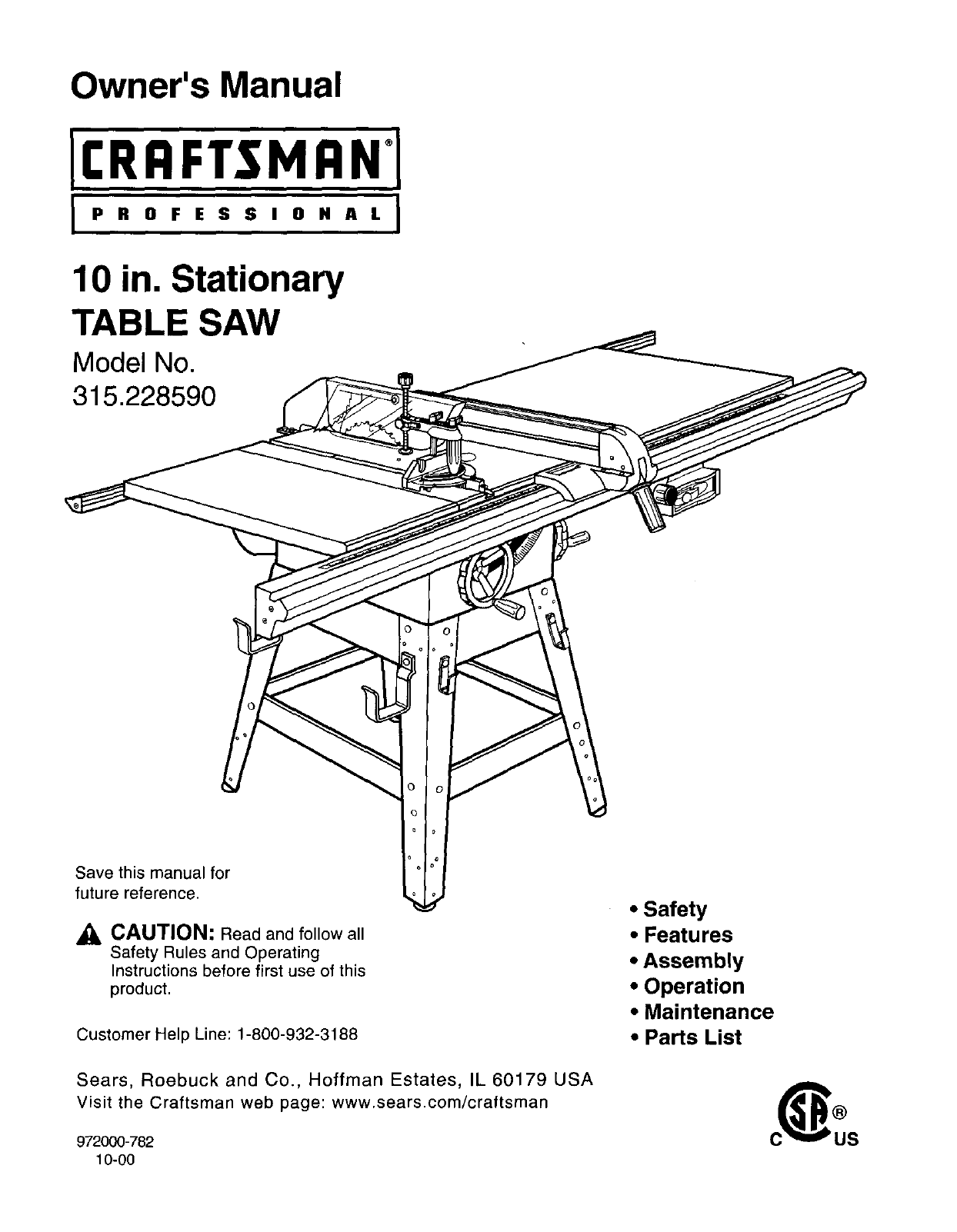 User Manual: CRAFTSMAN CRAFTSMAN Saw Table Manual CRAFTSMAN Saw Table Owner's Manual, CRAFTSMAN Saw Table installation guides