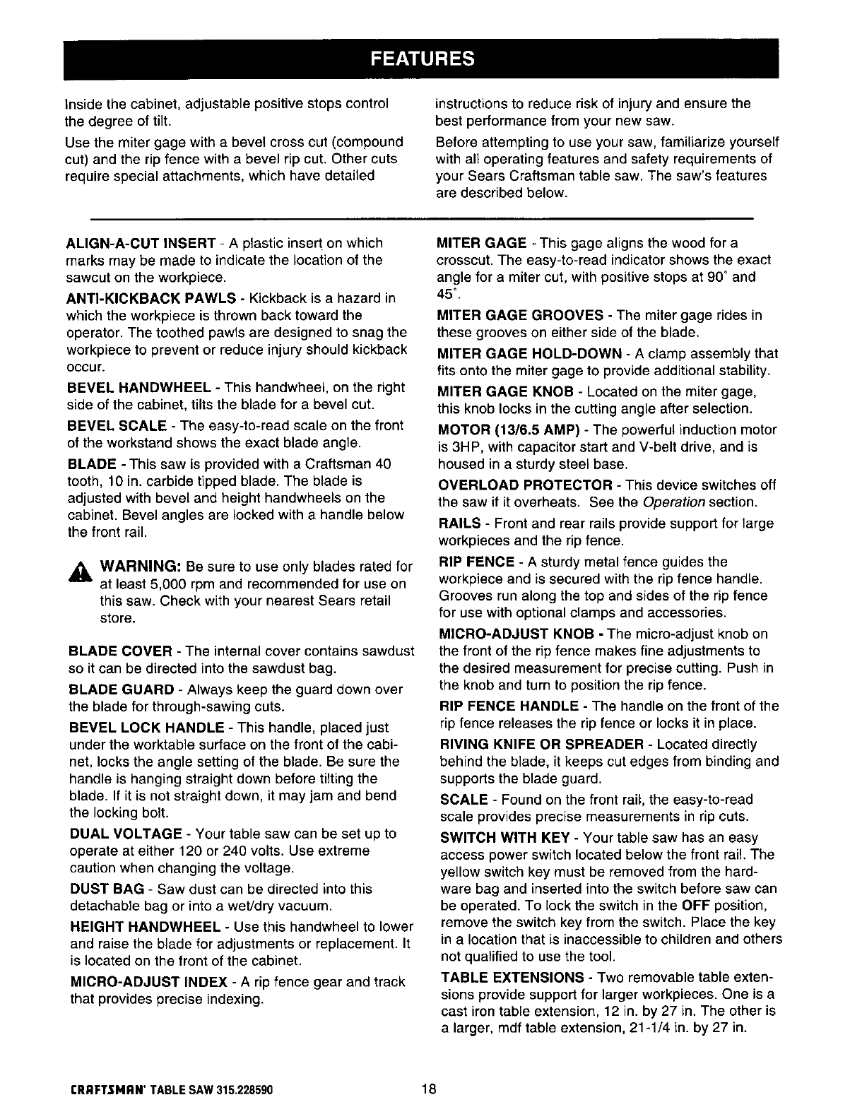 Your saw has many features for making cutting operations more pleasant and enjoyable. Safety , performance