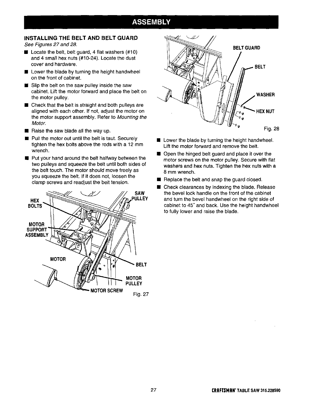 InstallingtheBeltandBeltGuard ........................................................................................................27