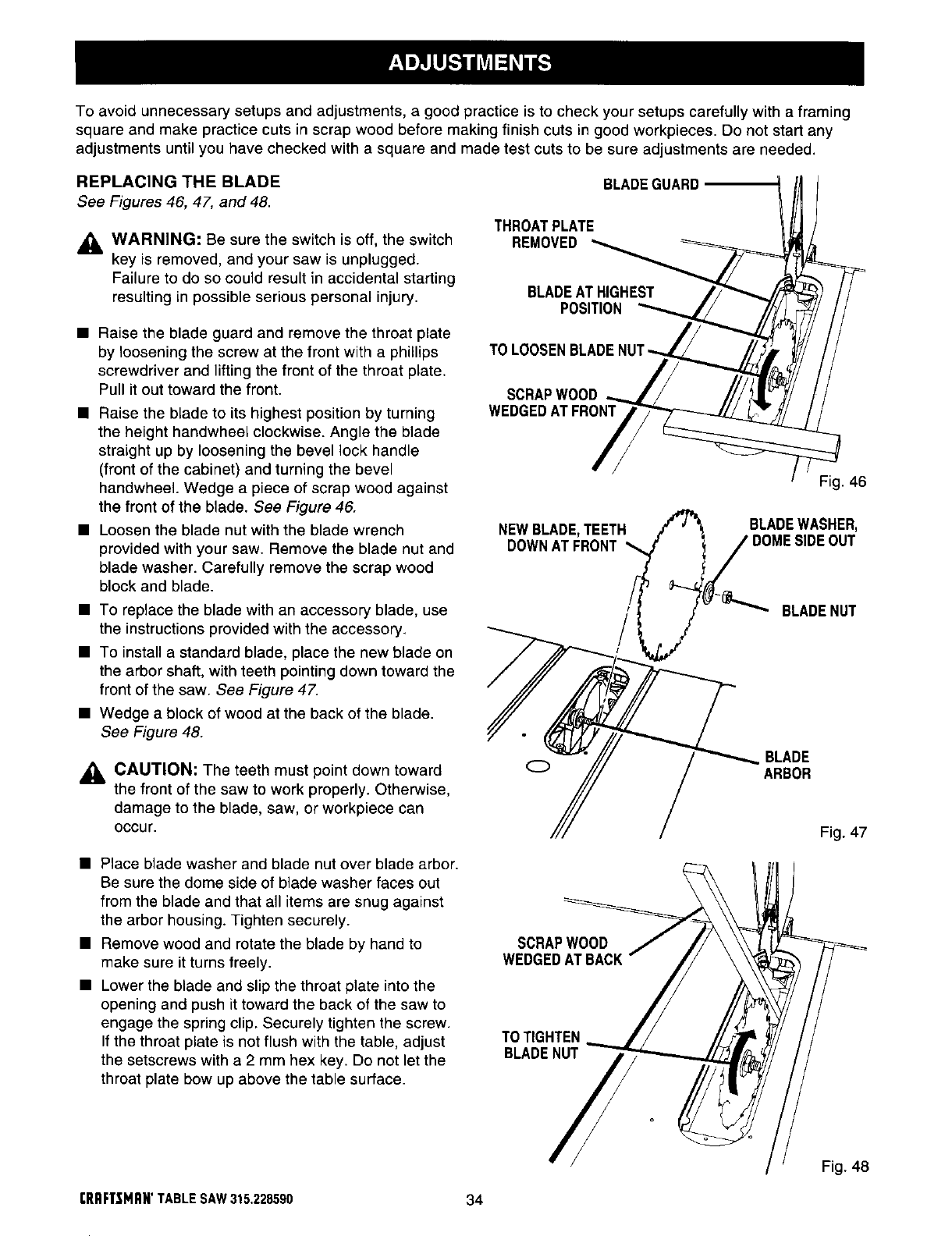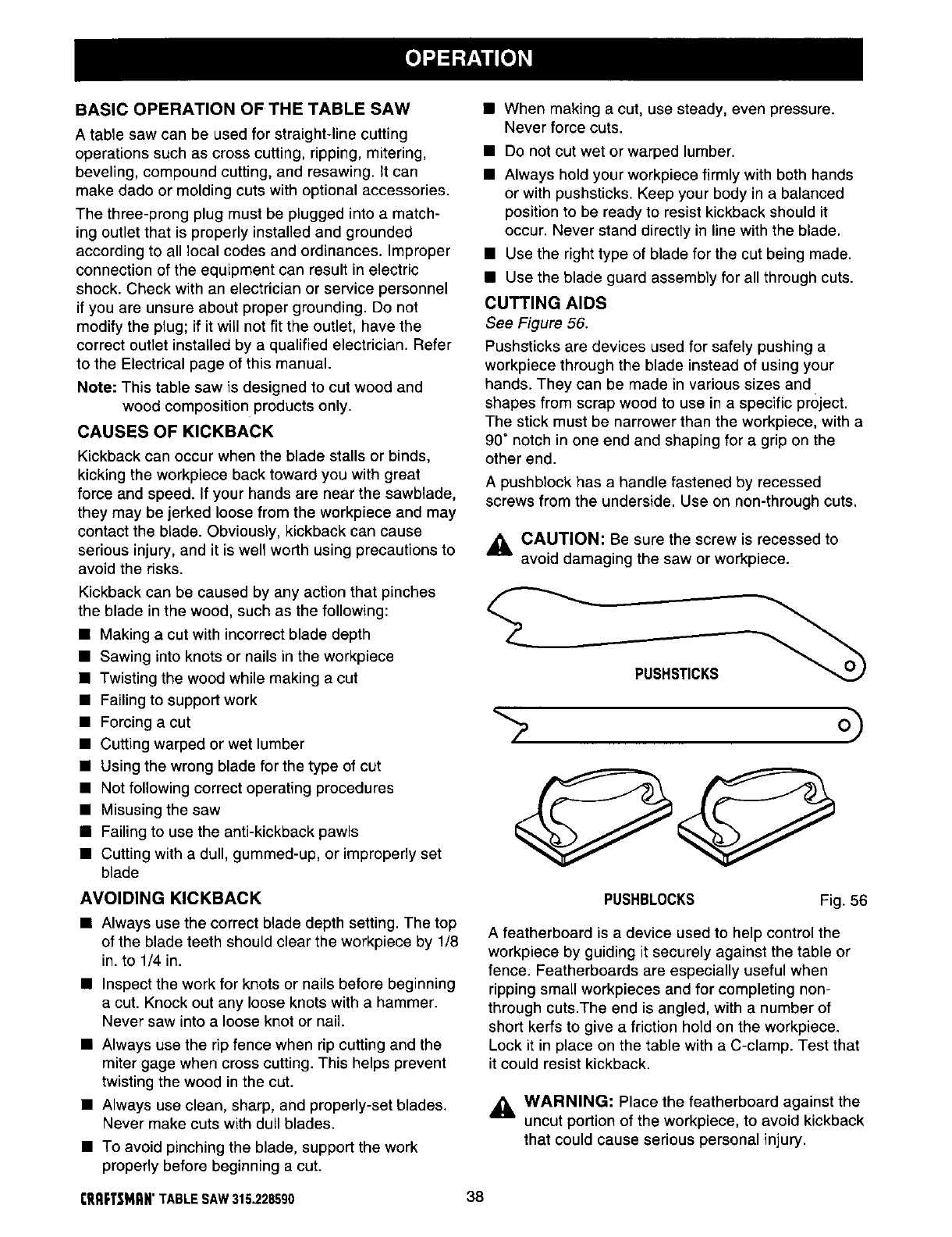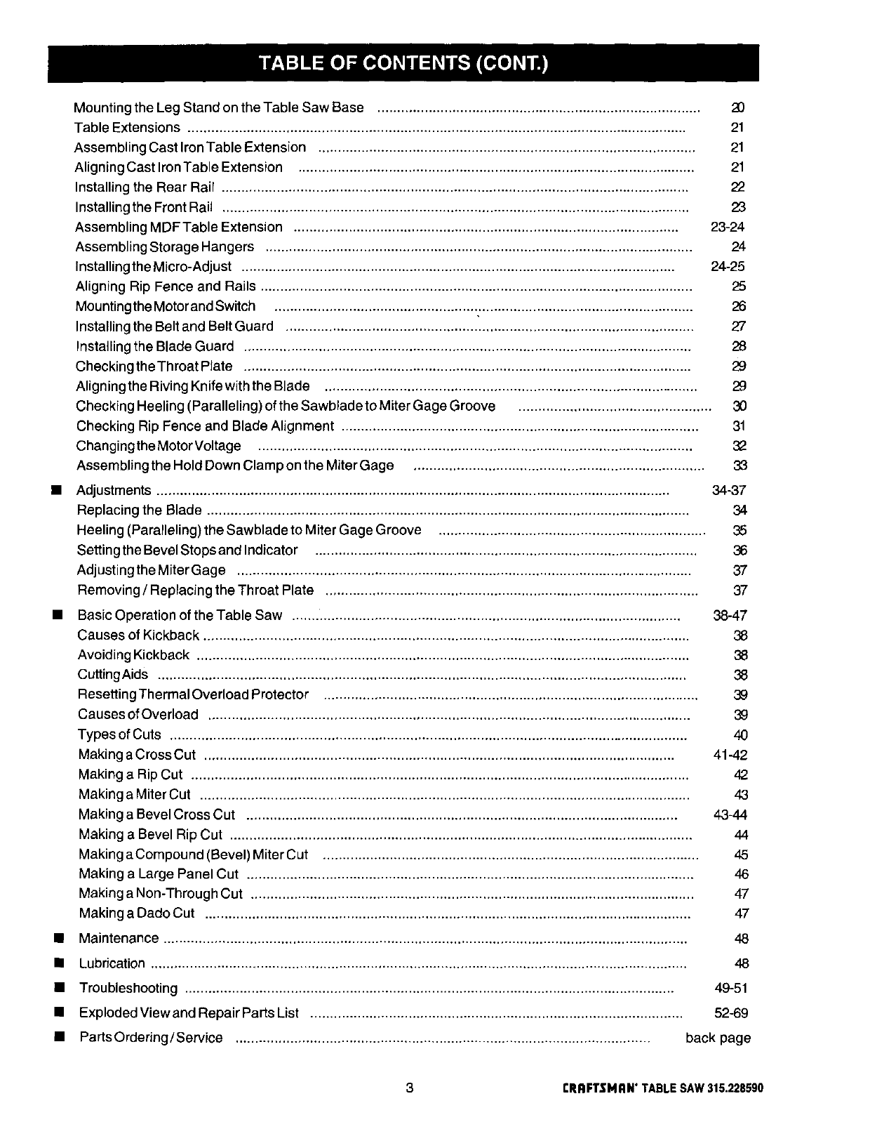• Basic Operation of the Table Saw ................................................................................................... 38-47