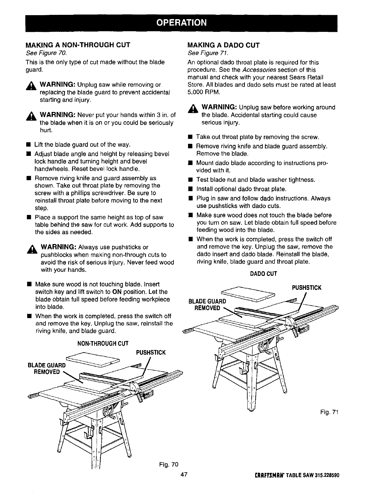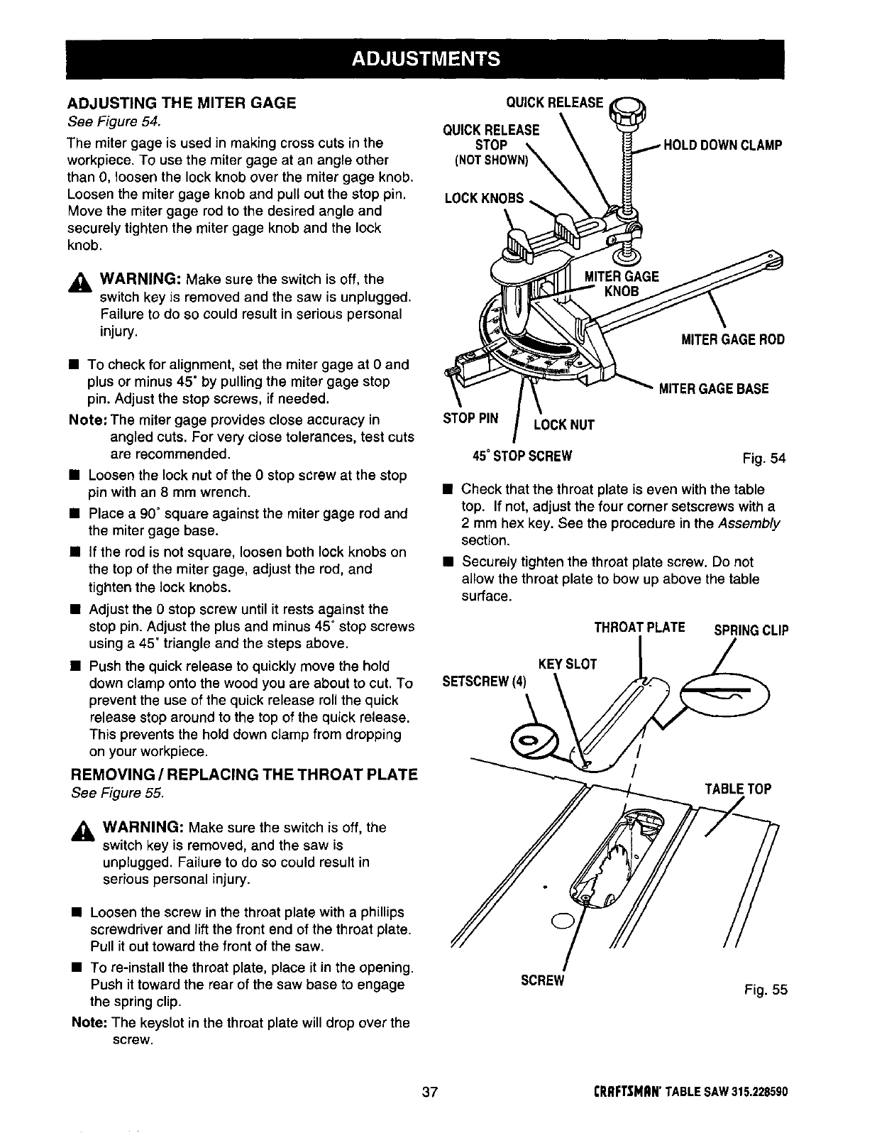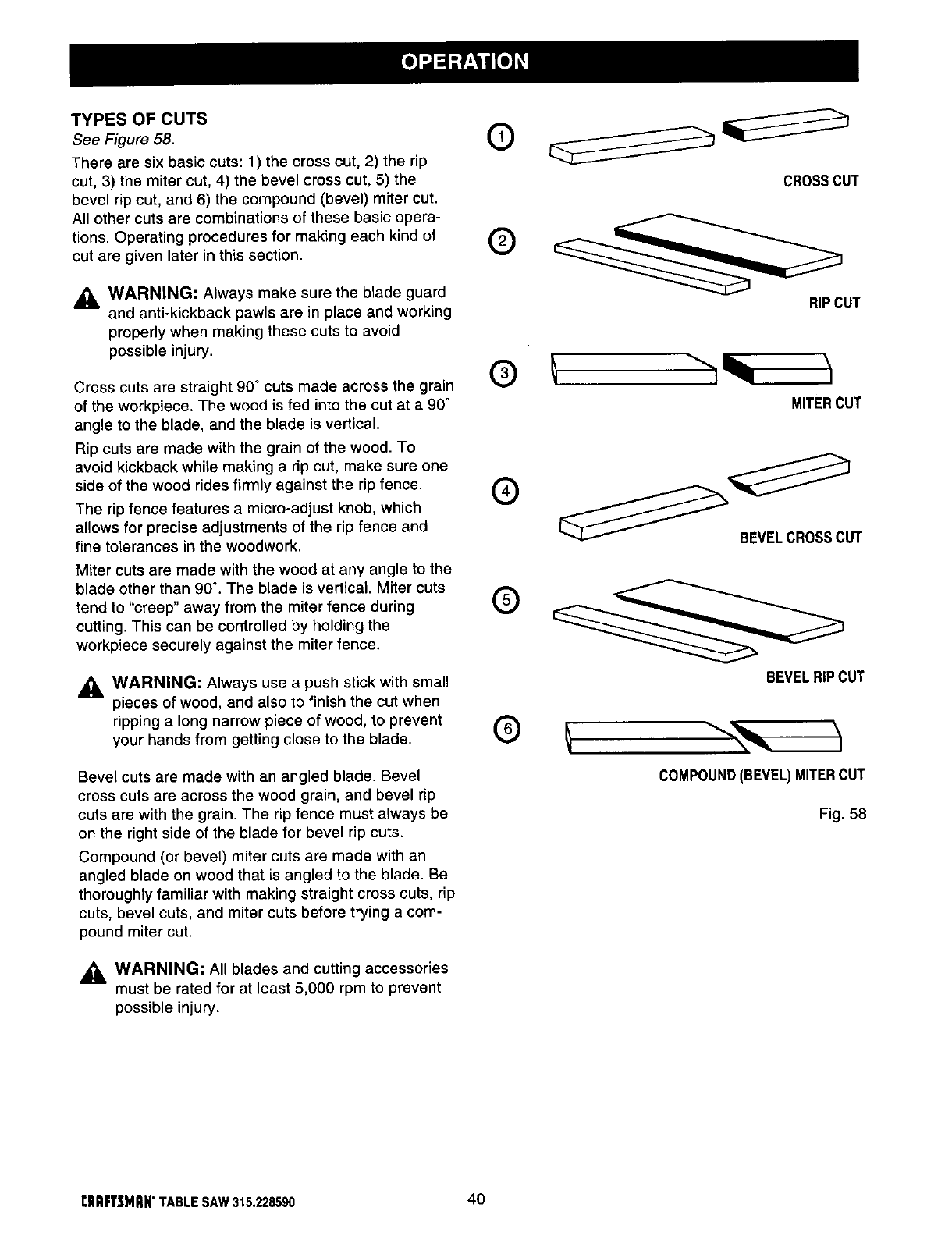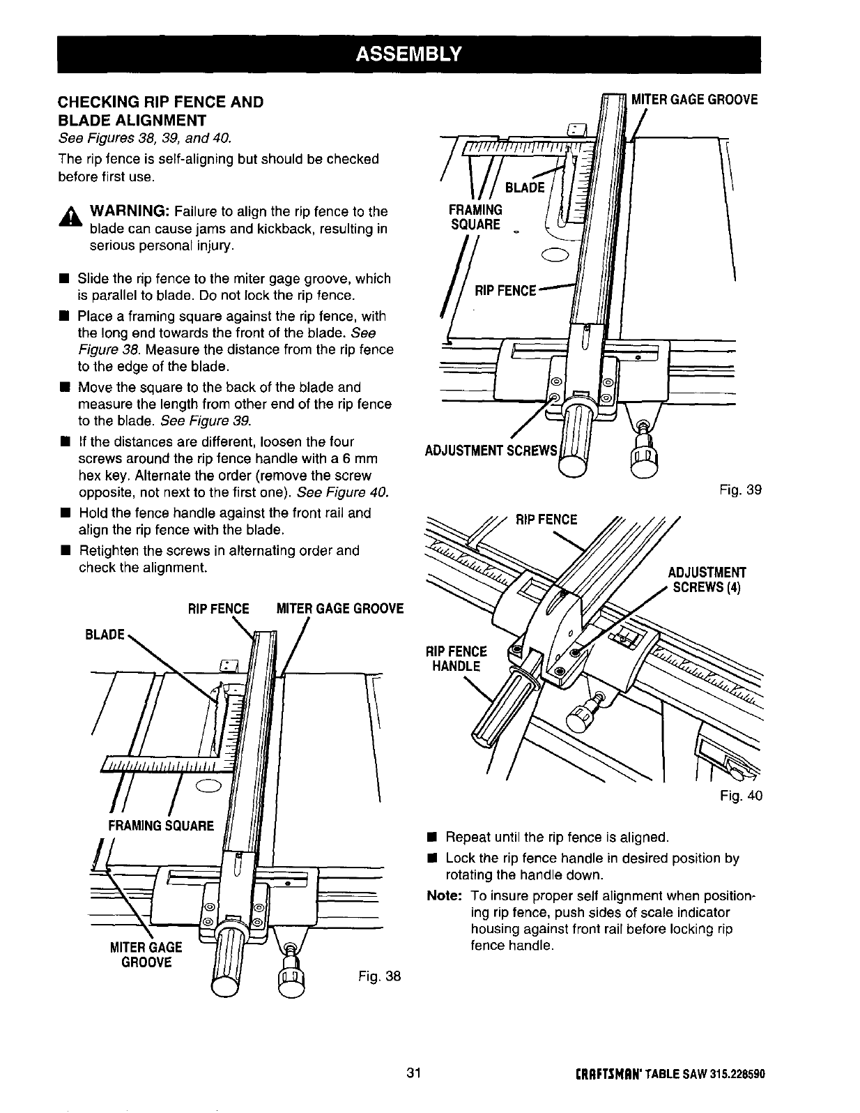 • Basic Operation of the Table Saw ................................................................................................... 38-47