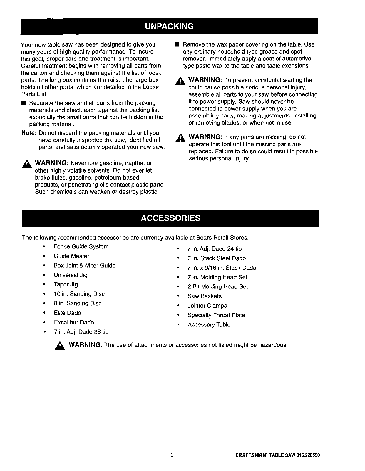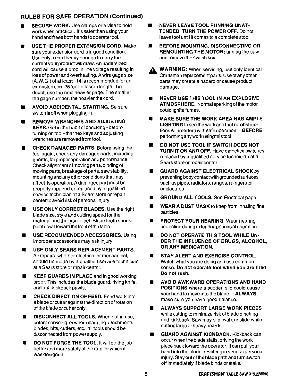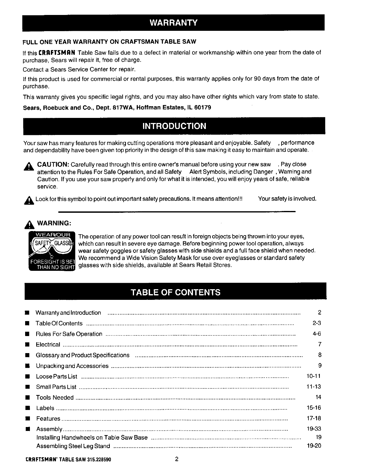 FULL ONE YEAR WARRANTY ON CRAFTSMAN TABLE SAW