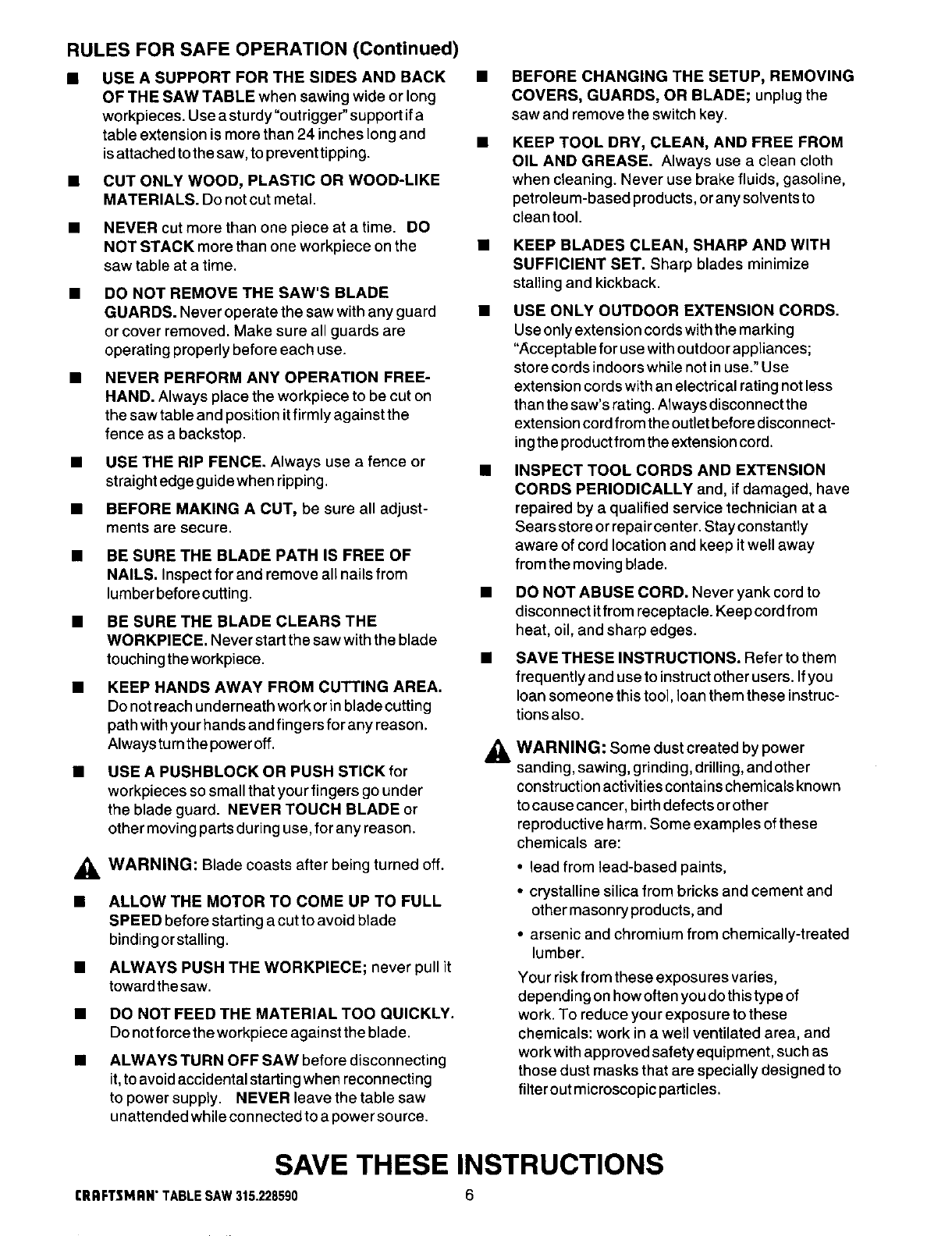 Caution. If you use your saw properly and only for what it is intended, you will enjoy years of safe, reliable