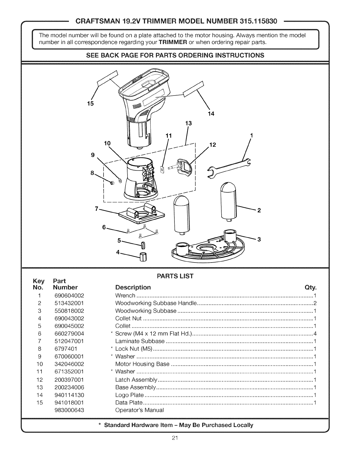 4 690043002 Collet Nut ........................................................................................................ 1