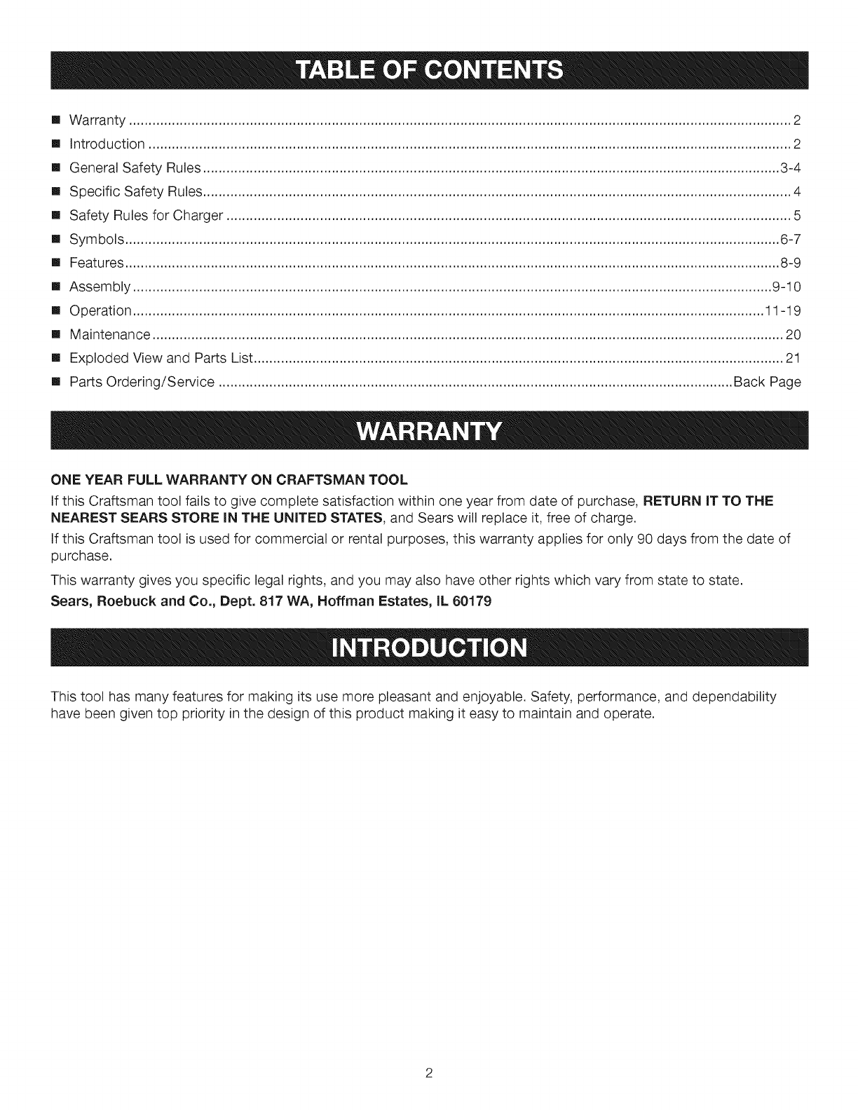 If this Craftsman tool fails to give complete satisfaction within one year from date of purchase, RETURN IT TO THE