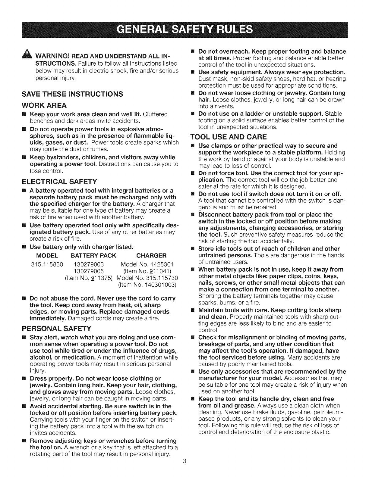 [] General Safety Rules .................................................................................................................................................... 3-4